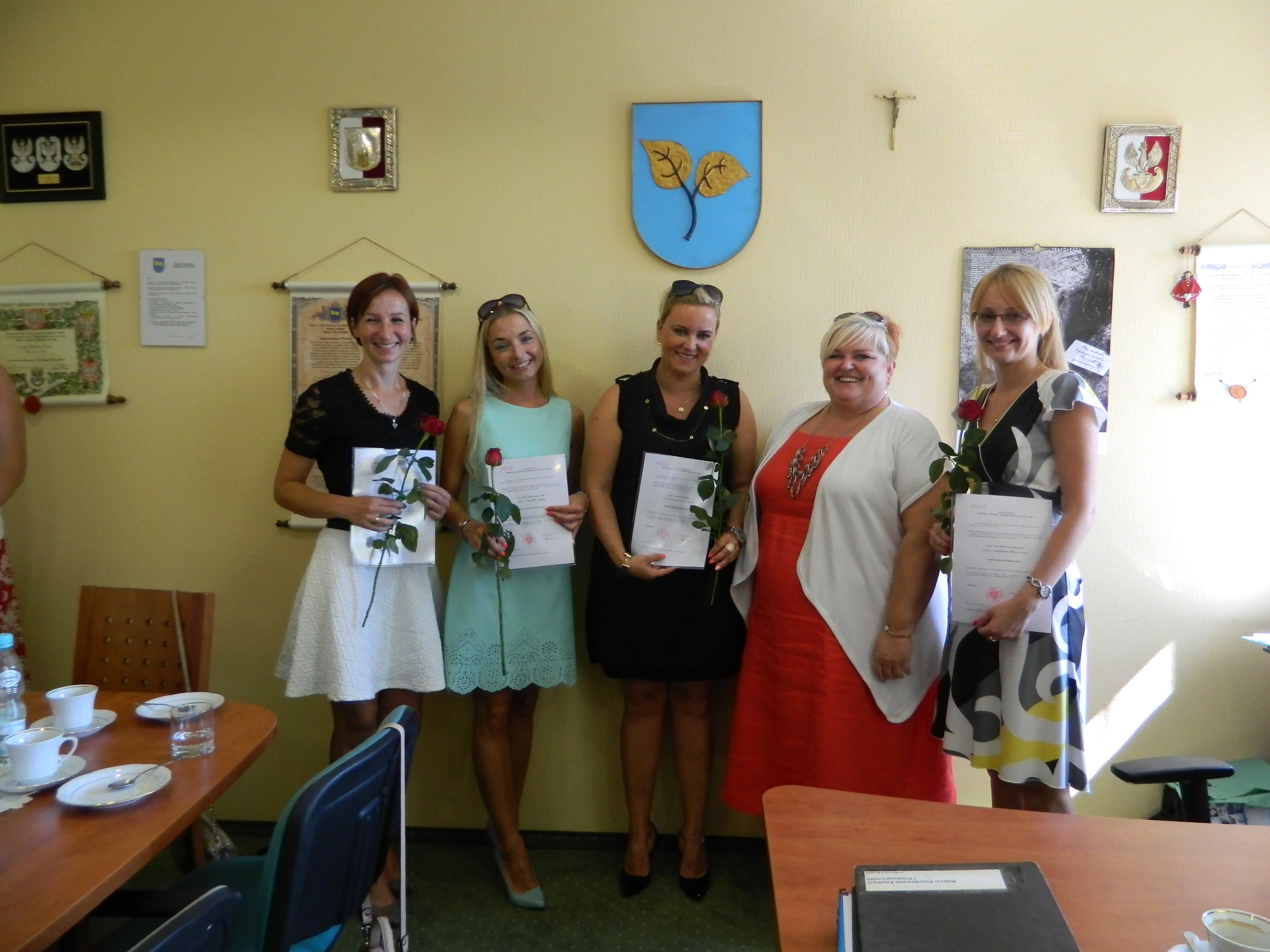 Dnia 31.08.2015 r. Wójt Gminy Wyry wręczyła nauczycielom, którzy zdali egzamin na stopień nauczyciela mianowanego akty awansu zawodowego. Przed odebraniem aktów nauczyciele złożyli ślubowanie.