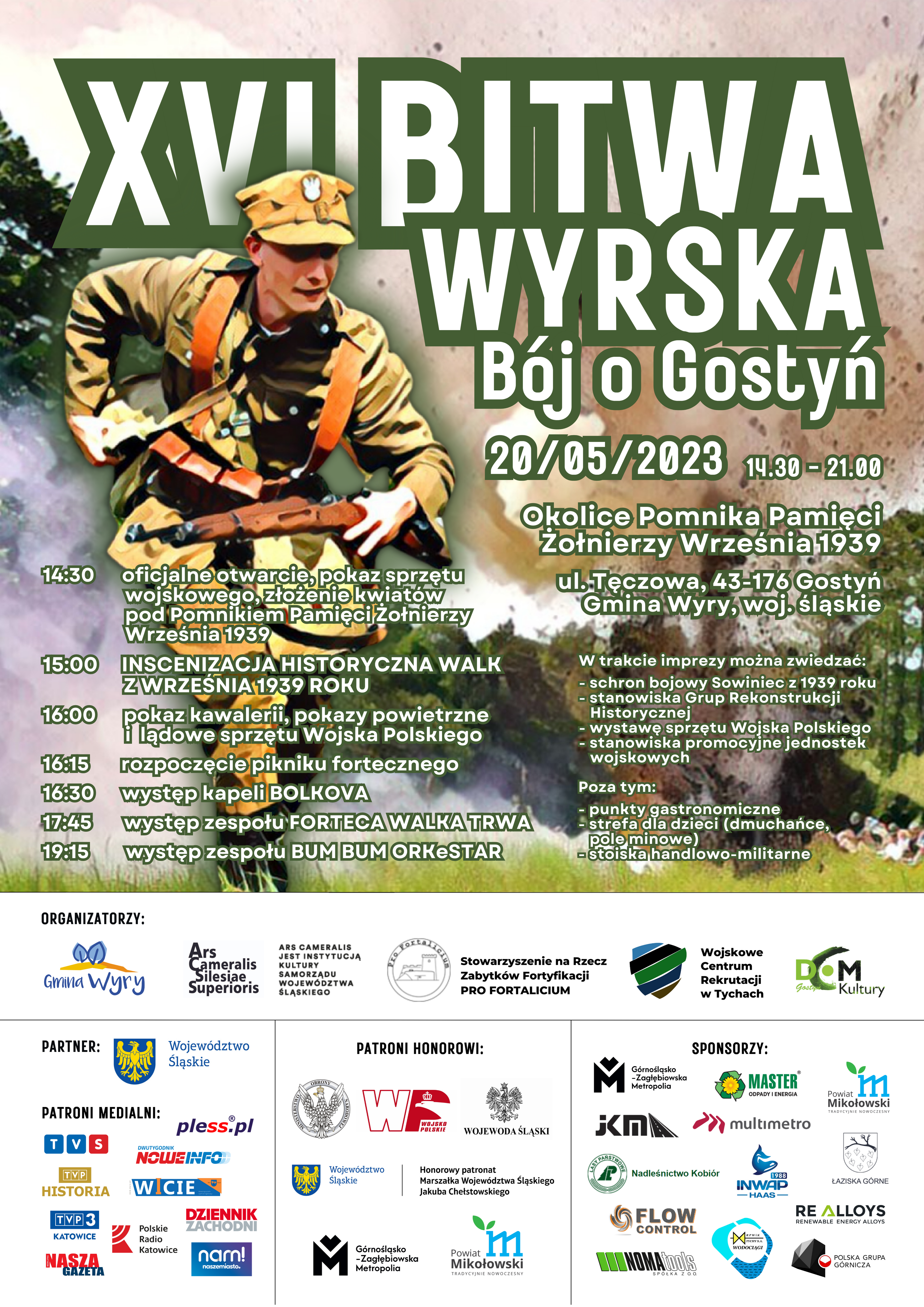 XVI edycja wielkiej rekonstrukcji historycznej Bitwy Wyrskiej – Boju o Gostyń już 20 maja. Start o godz. 14.30 w rejonie Pomnika Pamięci Żołnierzy Września 1939 oraz schronu bojowego „Sowiniec” przy ul. Tęczowej w Gostyni (woj. śląskie).