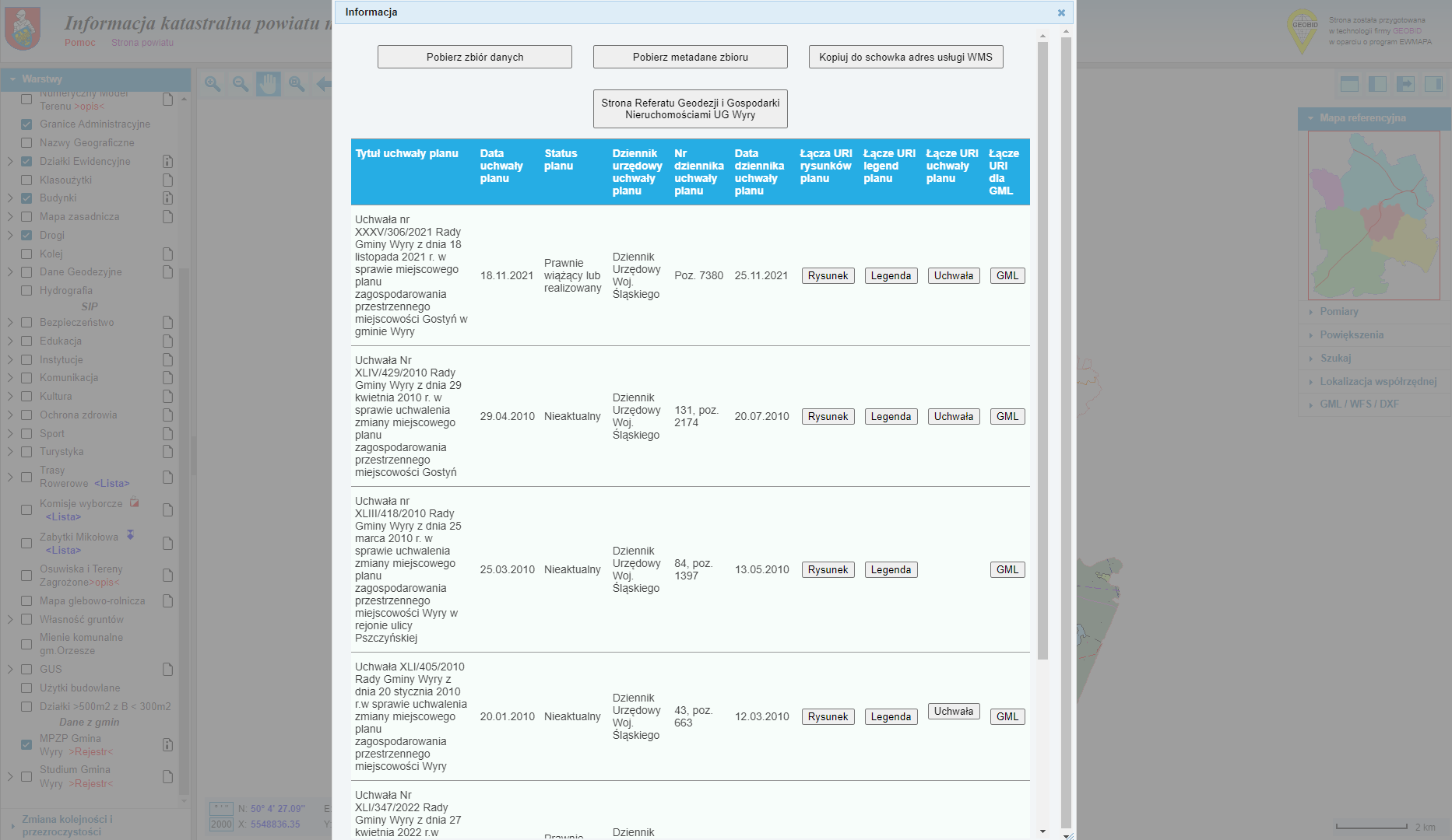 W Geoportalu dostępne są już aktualne dokumenty planistyczne Gminy Wyry: plany zagospodarowania przestrzennego Gostyni i Wyr oraz Studium uwarunkowań i kierunków zagospodarowania przestrzennego.