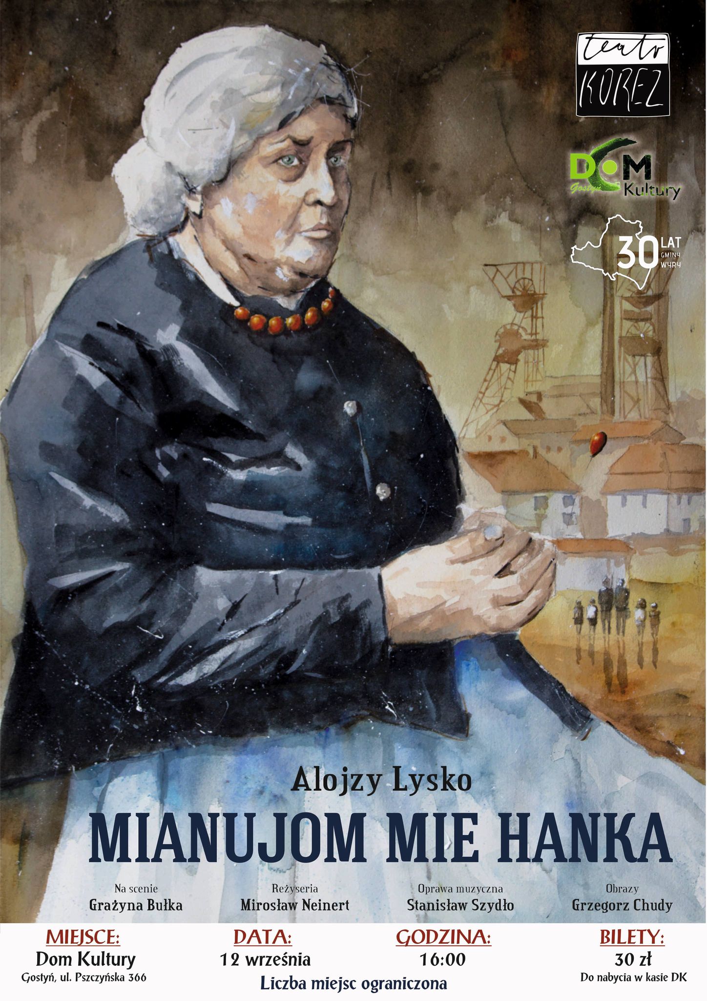 Dom Kultury 12 września na godz. 16.00 zaprasza na spektakl Mianujom mie Hanka. Bilety w cenie 30 zł do nabycia w kasie DK od poniedziałku do piątku w godzinach 7.30 - 15.00