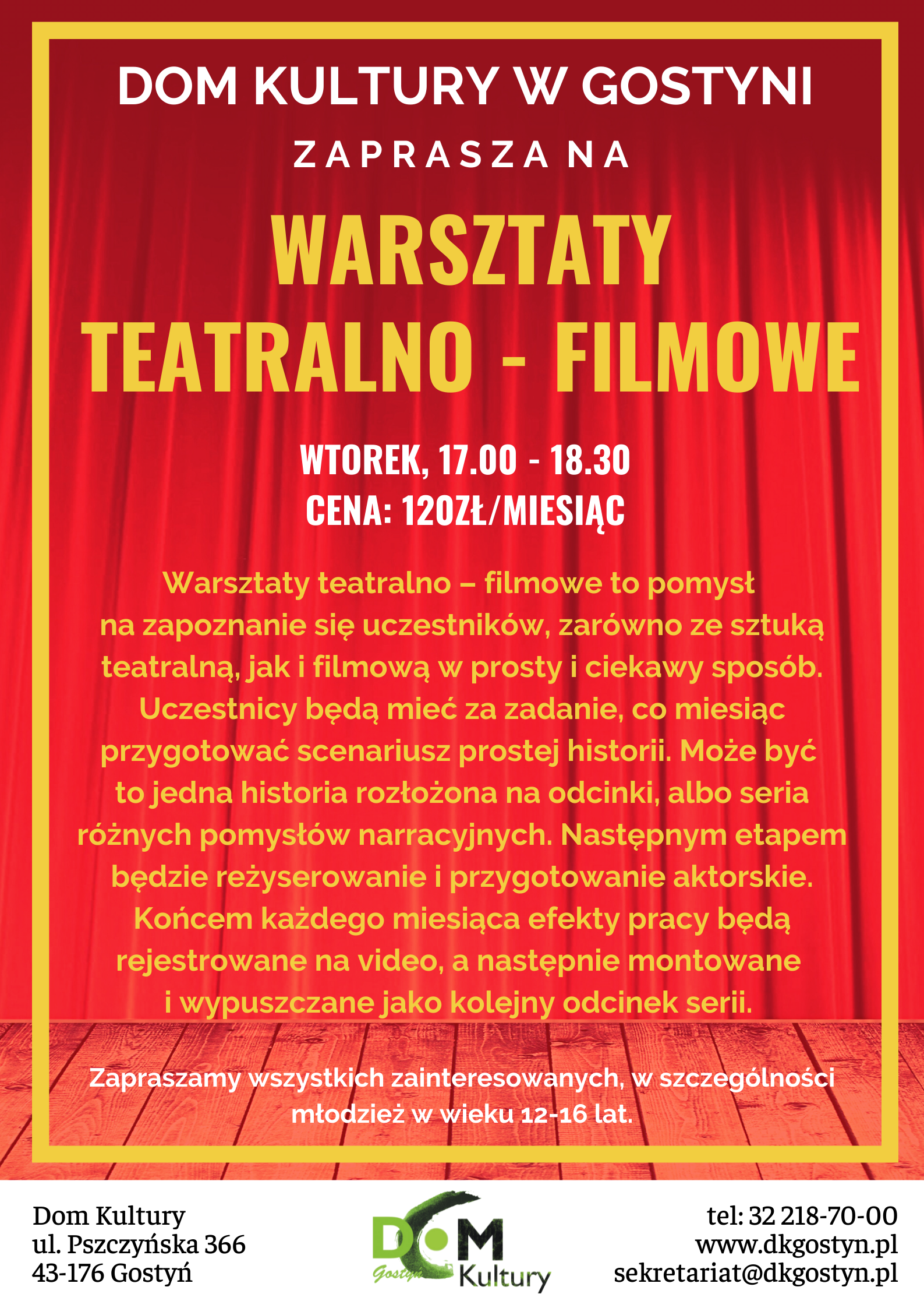 Przypominamy, że trwają zapisy na nowy semestr zajęć w domu kultury. Dziś chcemy zachęcić do warsztatów teatralno-filmowych.