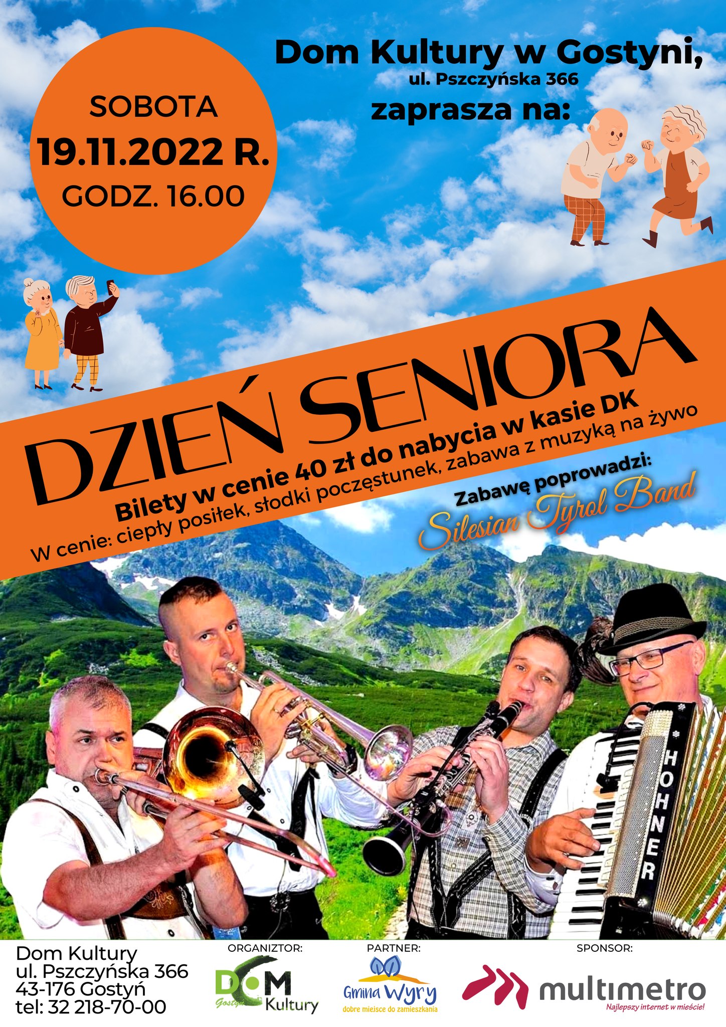 W naszej gminie Dzień Seniora uroczyście obchodzić będziemy 19 listopada. Dom kultury przygotował z tej okazji wyjątkowe wydarzenie. W tym roku dobrą zabawę zapewni zespół Silesian Tyrol Band. Bilety są jeszcze dostępne! Można je nabyć w domu kultury. Zachęcamy do uczestnictwa.