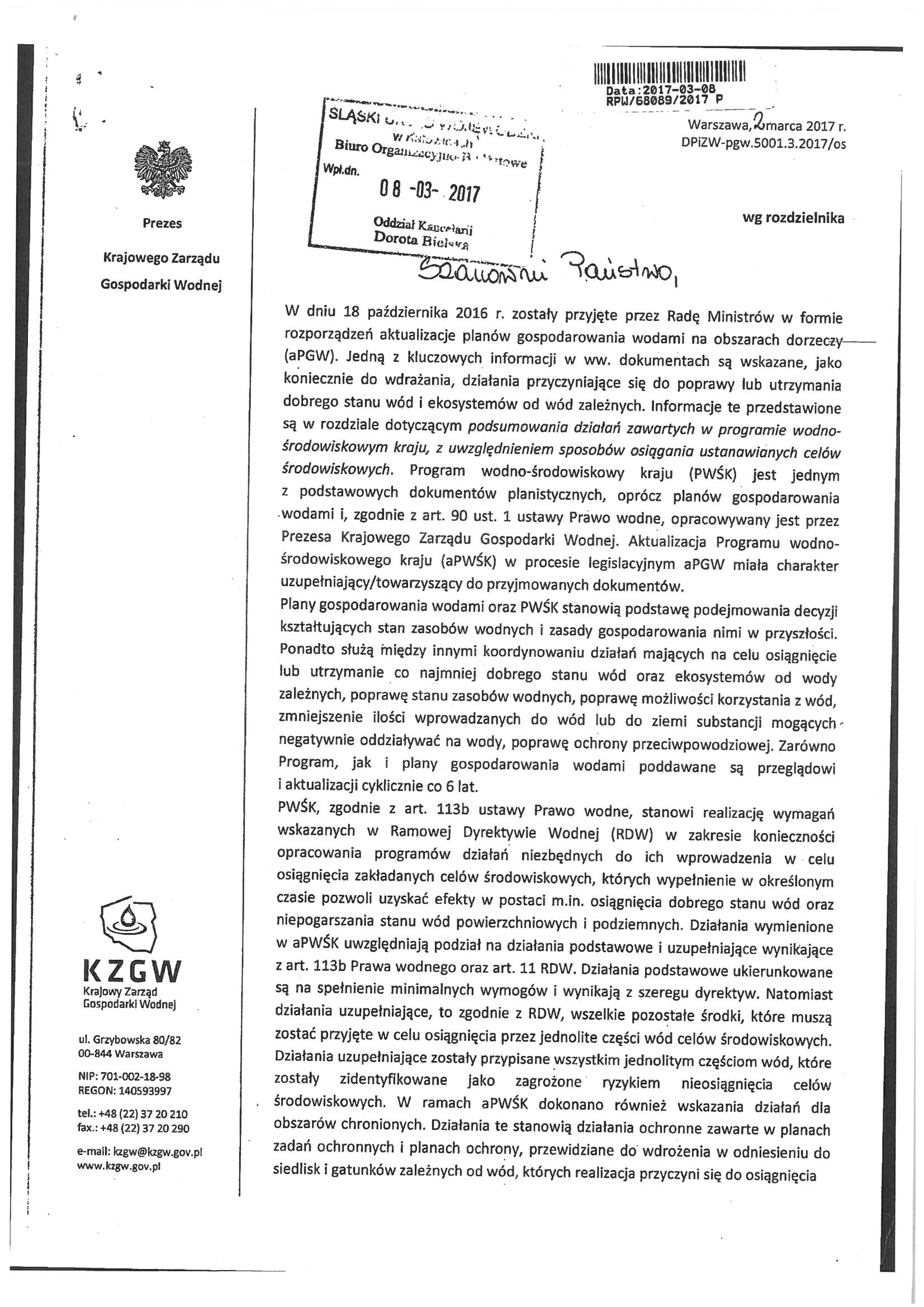 18 października 2016 r. Rada Ministrów przyjęła aktualizację planów gospodarowania wodami.