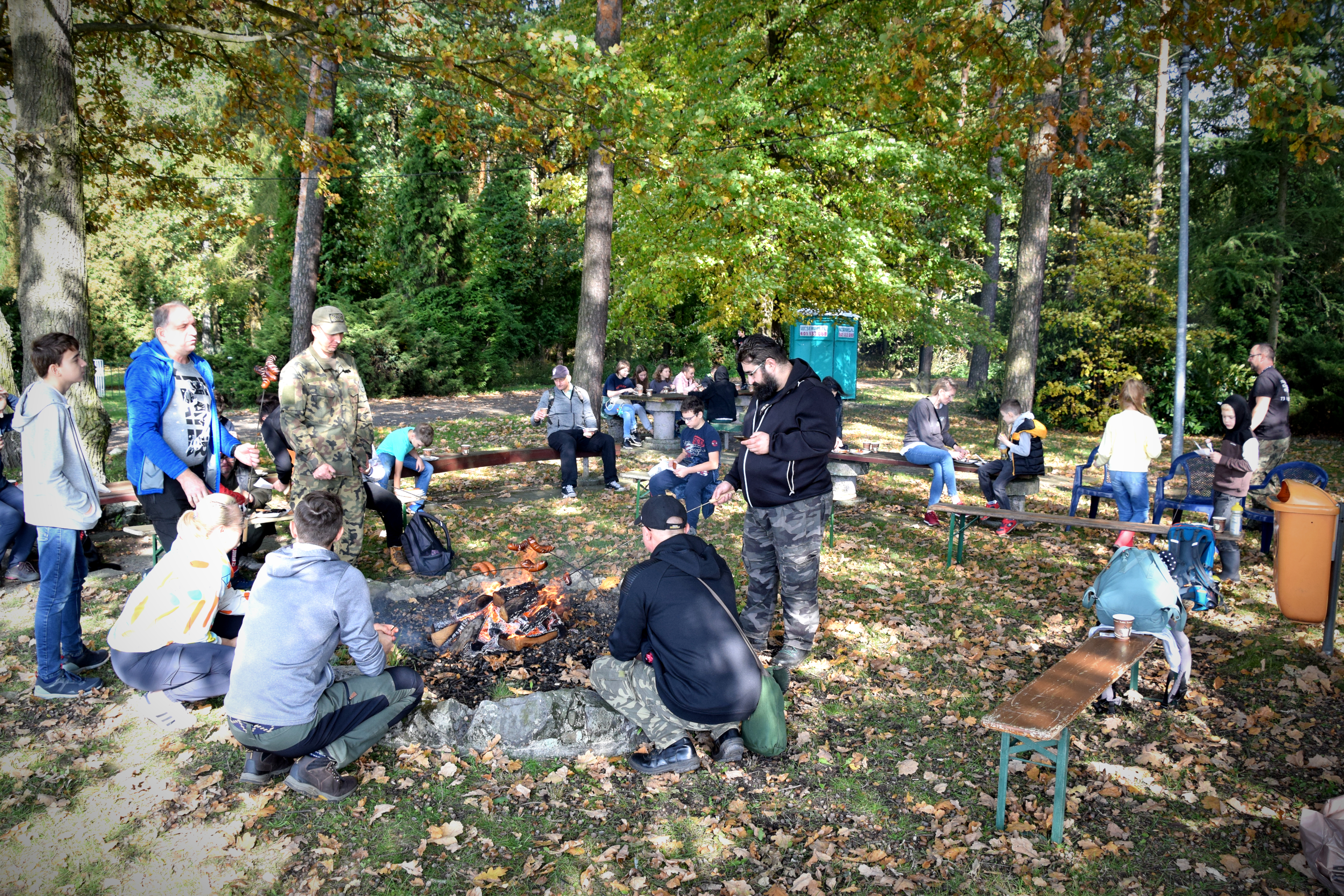 Po wysłuchaniu wyjątkowych opowieści o schronie i walkach września 1939 roku, grupa wróciła w okolice gostyńskiego pomnika. Spacer zakończył się wspólnym ogniskiem i pieczeniem kiełbasek.