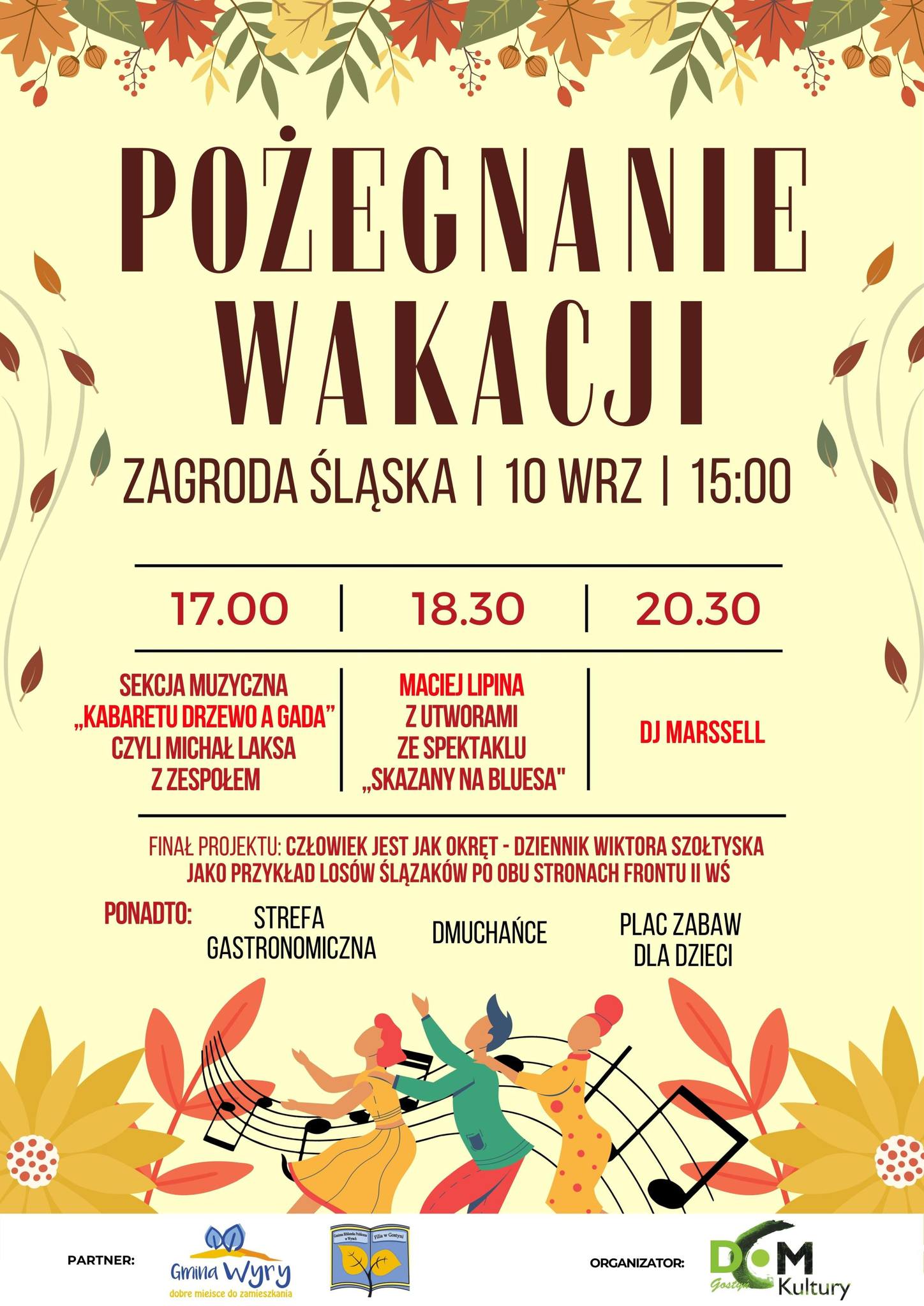 Z kolei Dom Kultury w Gostyni zaprasza na Pożegnanie wakacji. Start już o godz. 15.00. Wydarzenie odbędzie się w dużej sali domu kultury.