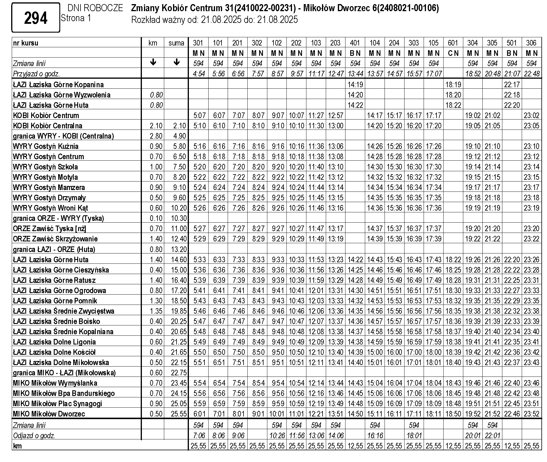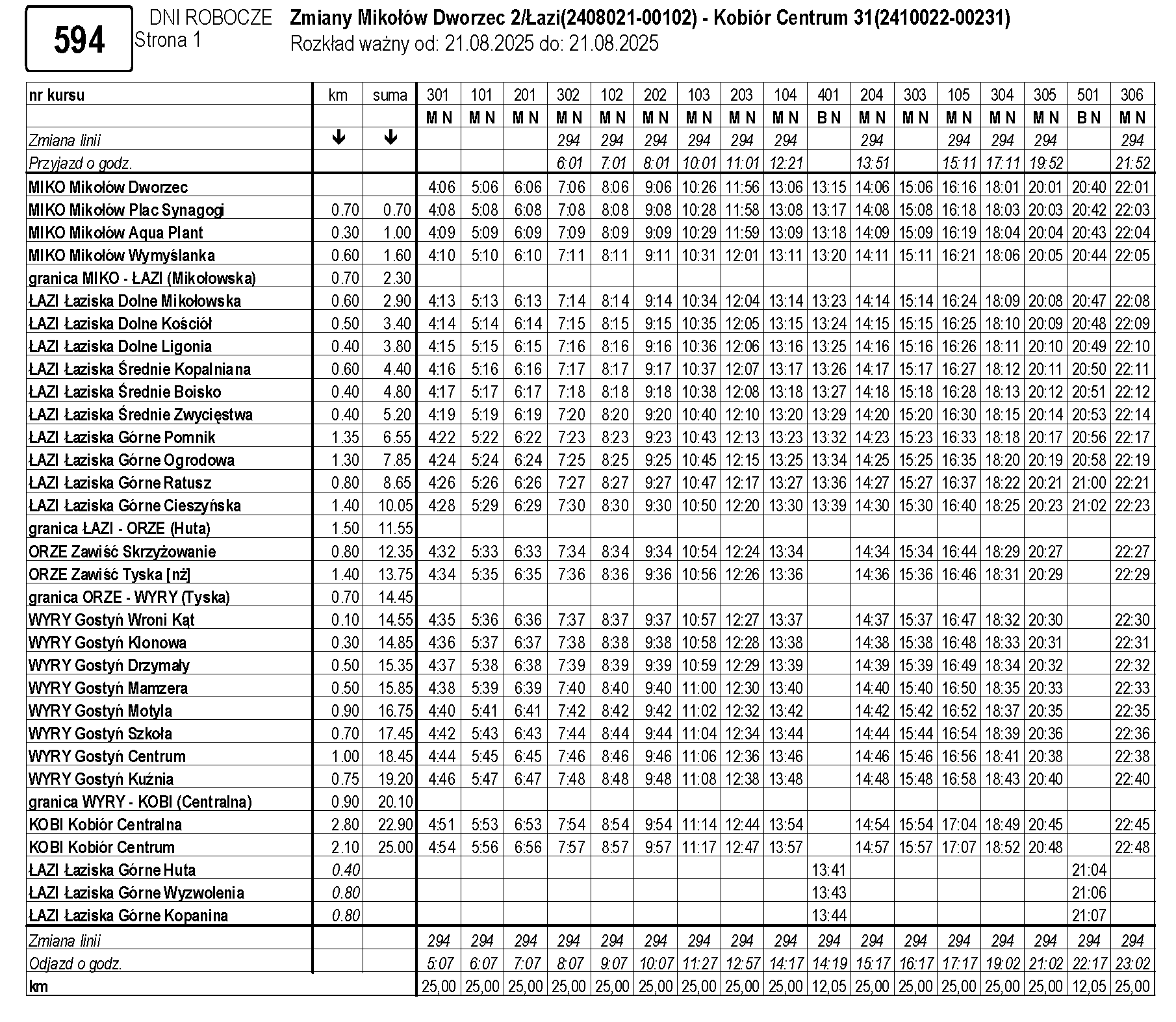 • autobusy powyższej linii będą kursować na trasie: Kobiór Centrum – Mikołów Dworzec przez: Gostyń, Orzesze-Zawiść, Łaziska Górne, Łaziska Średnie i Łaziska Dolne.