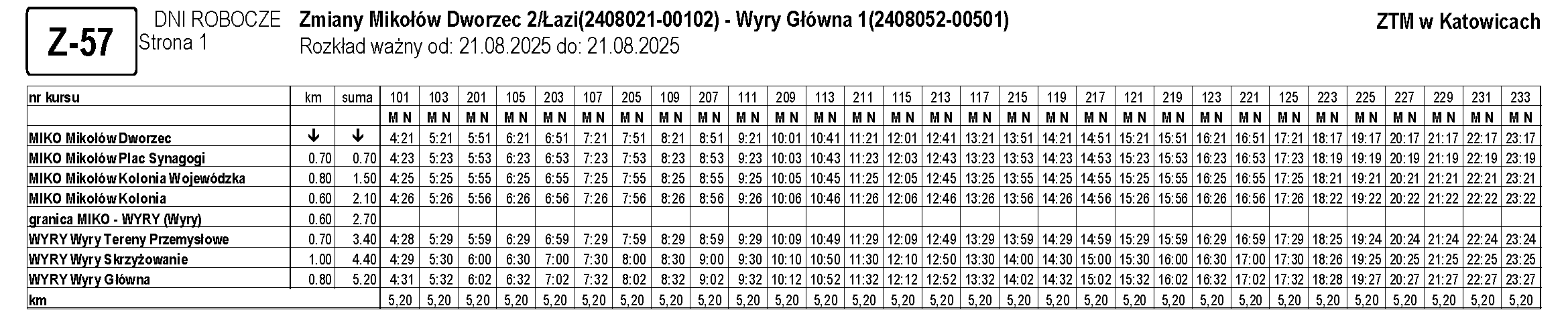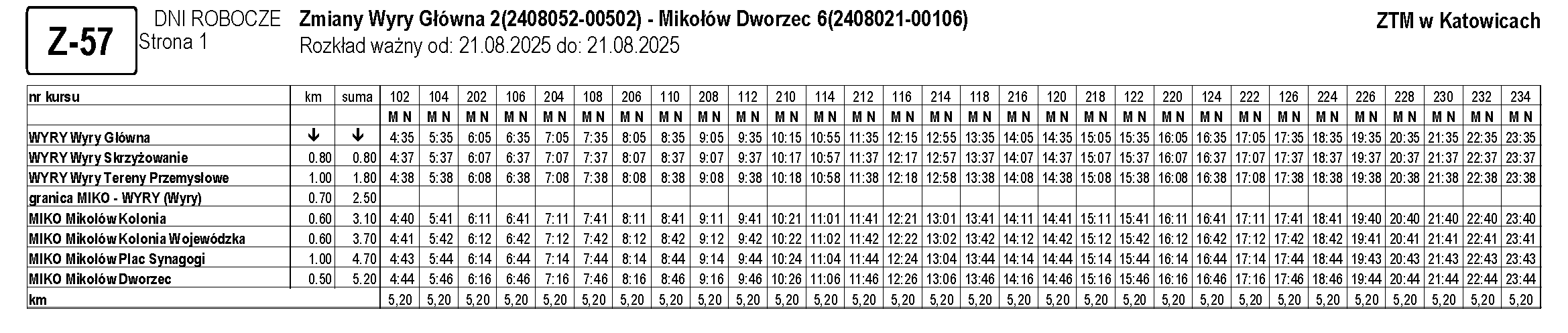 … – Mikołów Kolonia 02 – Wyry Skrzyżowanie 32 – Łaziska Średnie Wyrska 01 – …