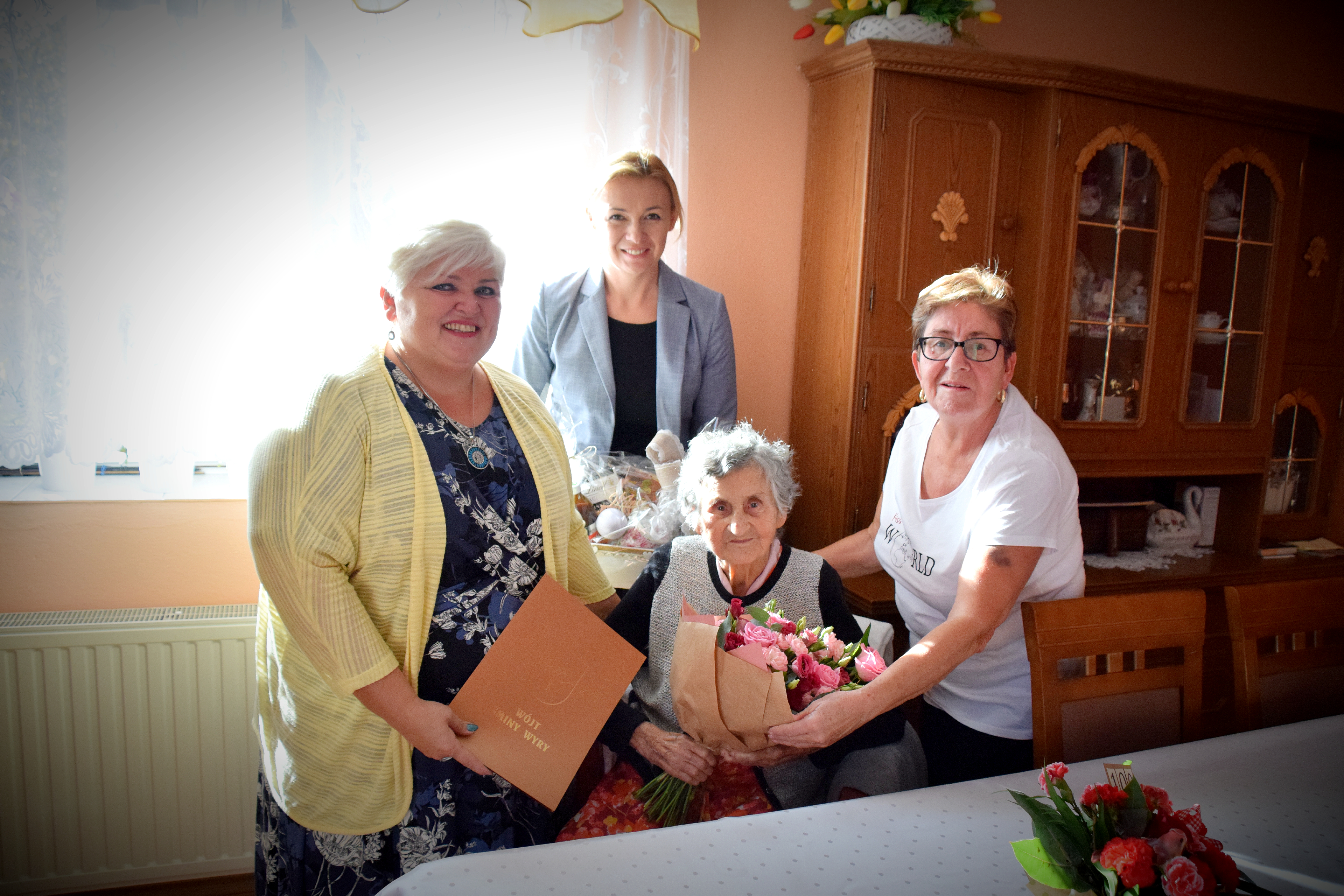 Wójt Gminy Wyry Barbara Prasoł oraz przewodnicząca Rady Joanna Pasierbek-Konieczny złożyły dziś wizytę Pani Jadwidze Licheckiej – mieszkance naszej gminy, która w minioną sobotę świętowała 100. rocznicę urodzin!