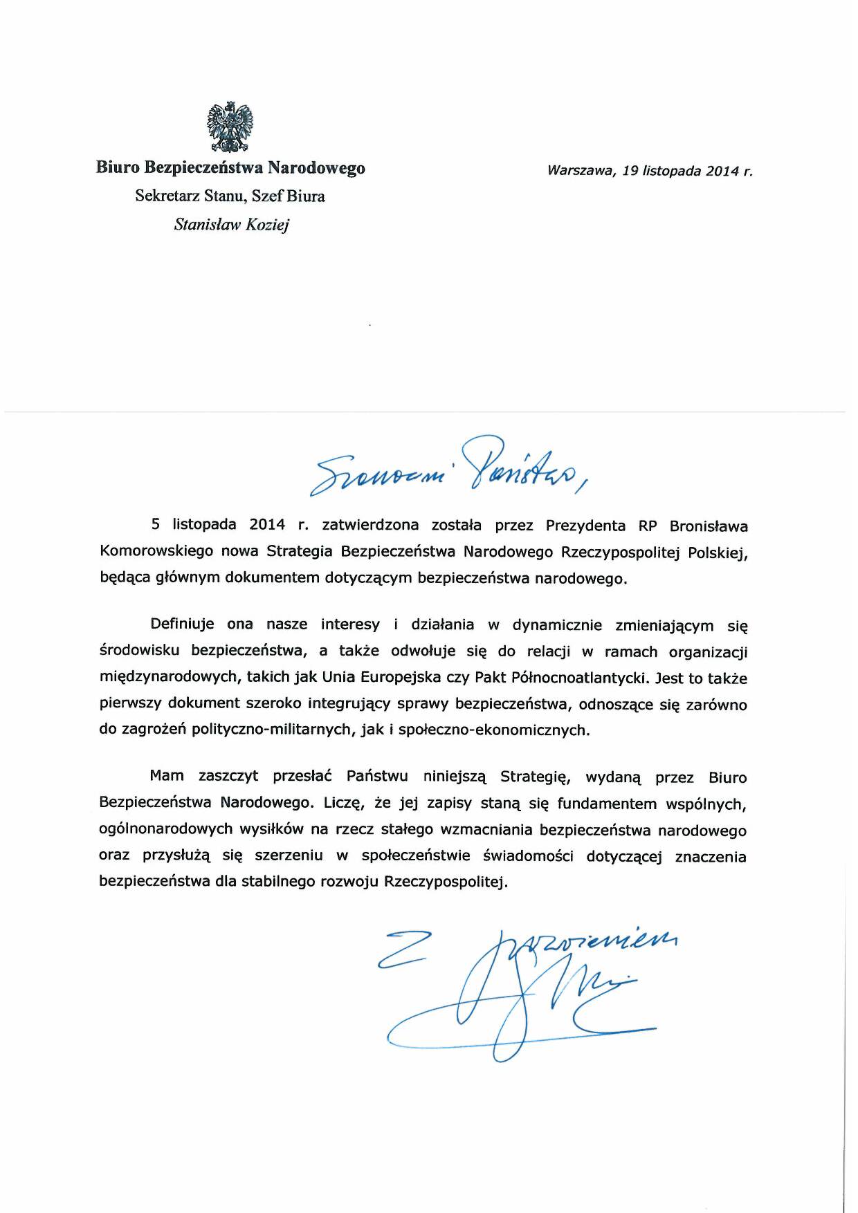 Strategia Bezpieczeństwa Narodowego Rzeczypospolitej Polskiej 2014 tutaj.
