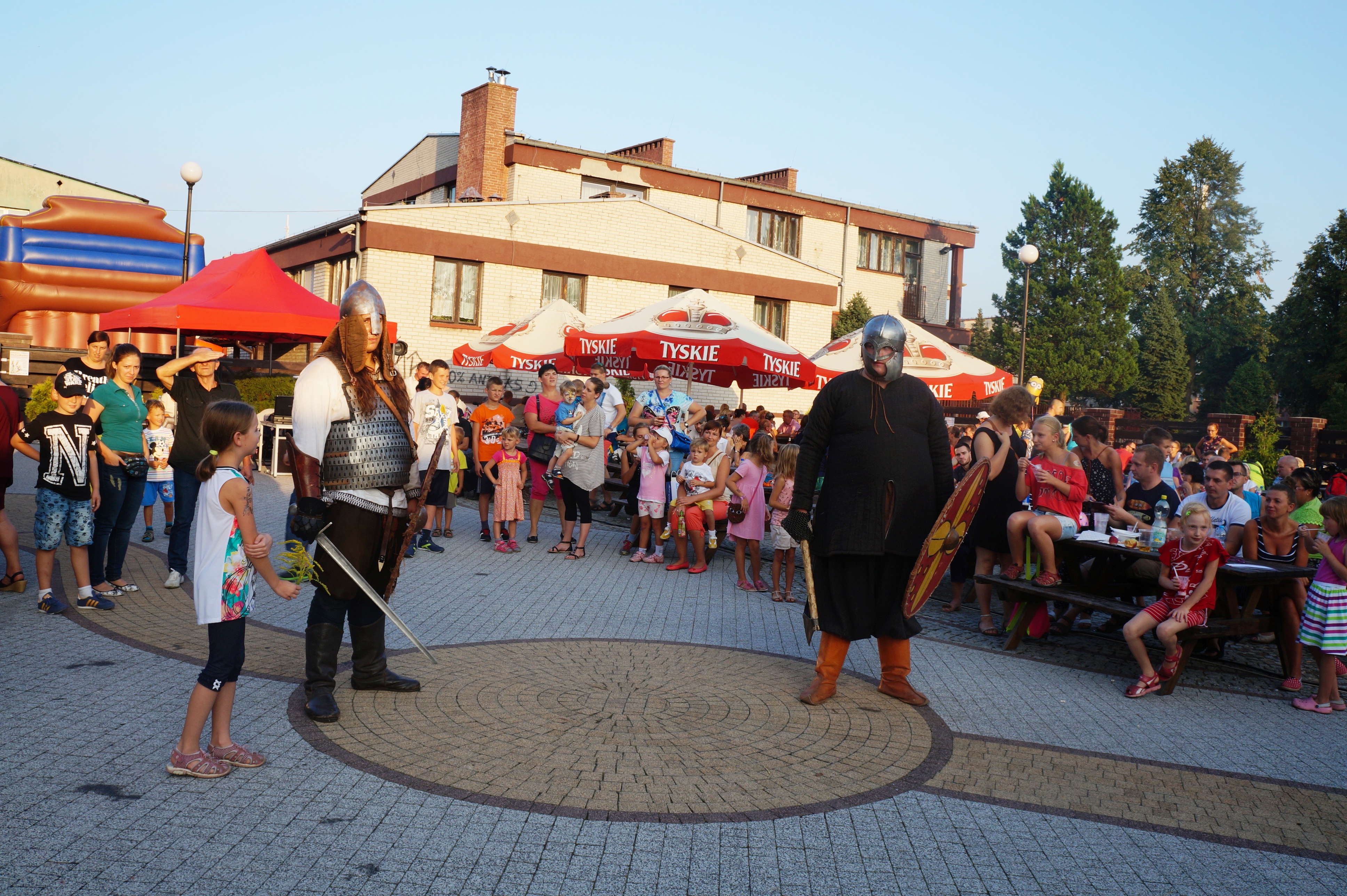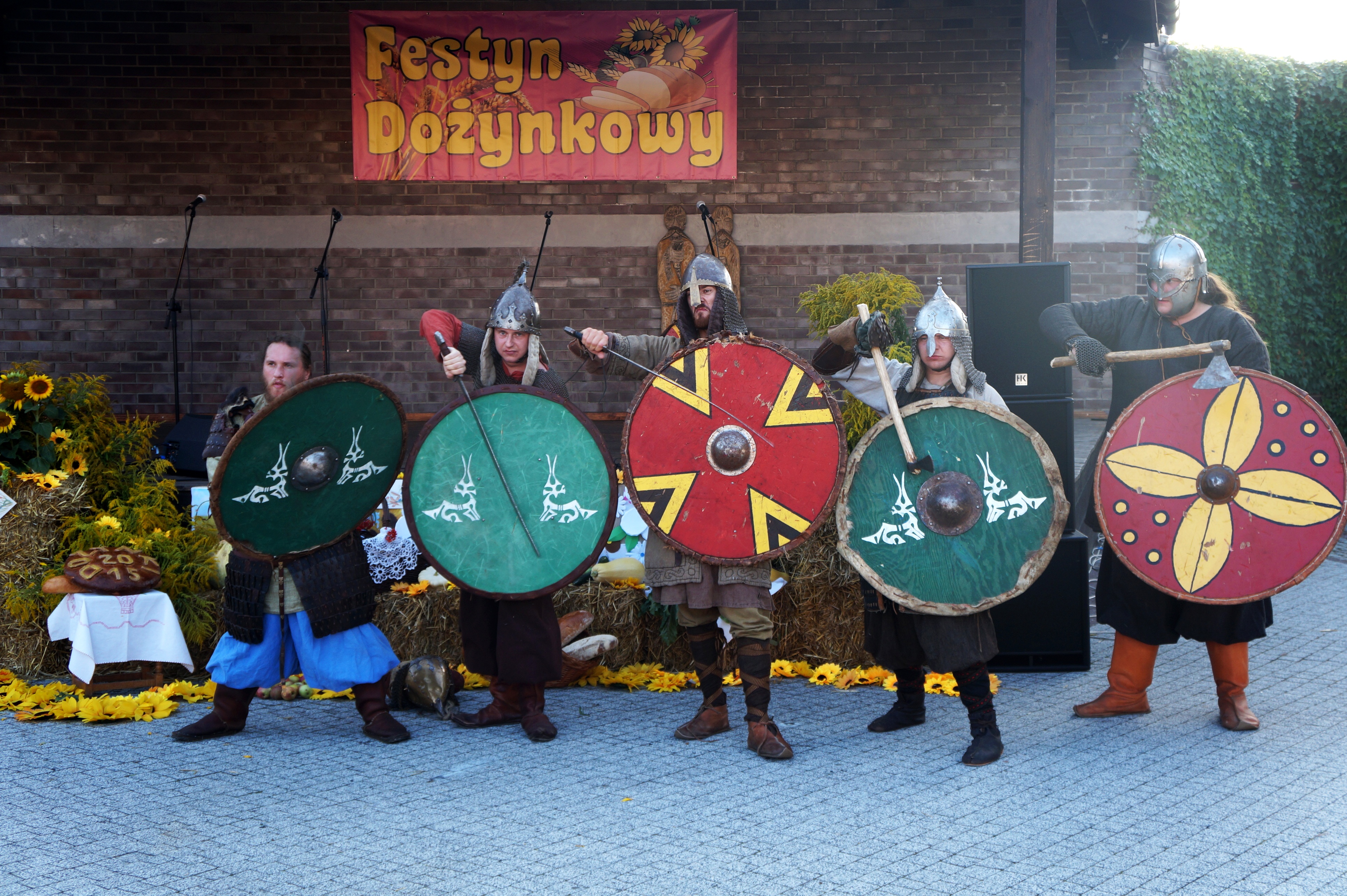 Piękne słoneczne popołudnie, osada średniowieczna, na kostkach ze słomy bochen chleba, płody rolne i kwiaty –to sceneria festynu dożynkowego w Zagrodzie Śląskiej w Gostyni, który odbył się 29.08.2015 r. Tu i ówdzie bito monety, odbywały się konkursy i pokazy walk rycerzy, chętni przymierzali zbroję i inne rekwizyty. Dookoła roznosiła się woń gulaszu z dziczyzny za sprawą kucharza Tomka, który zapraszał do degustacji a odważni samodzielnie wypiekali podpłomyki z rybą i warzywami. Licznie przybyłym mieszkańcom Gminy Wyry do zabawy przygrywała kapela Trojoki prezentując repertuar i barwne stroje w stylu cygańskim, kowbojskim i śląskim. Zagroda tego dnia była również miejscem zakończenia rodzinnego rajdu rowerowego i wręczania przez Panią Wójt dyplomów uczestnictwa i symbolicznych upominków. Wieczór upłynął w miłej i przyjaznej atmosferze.