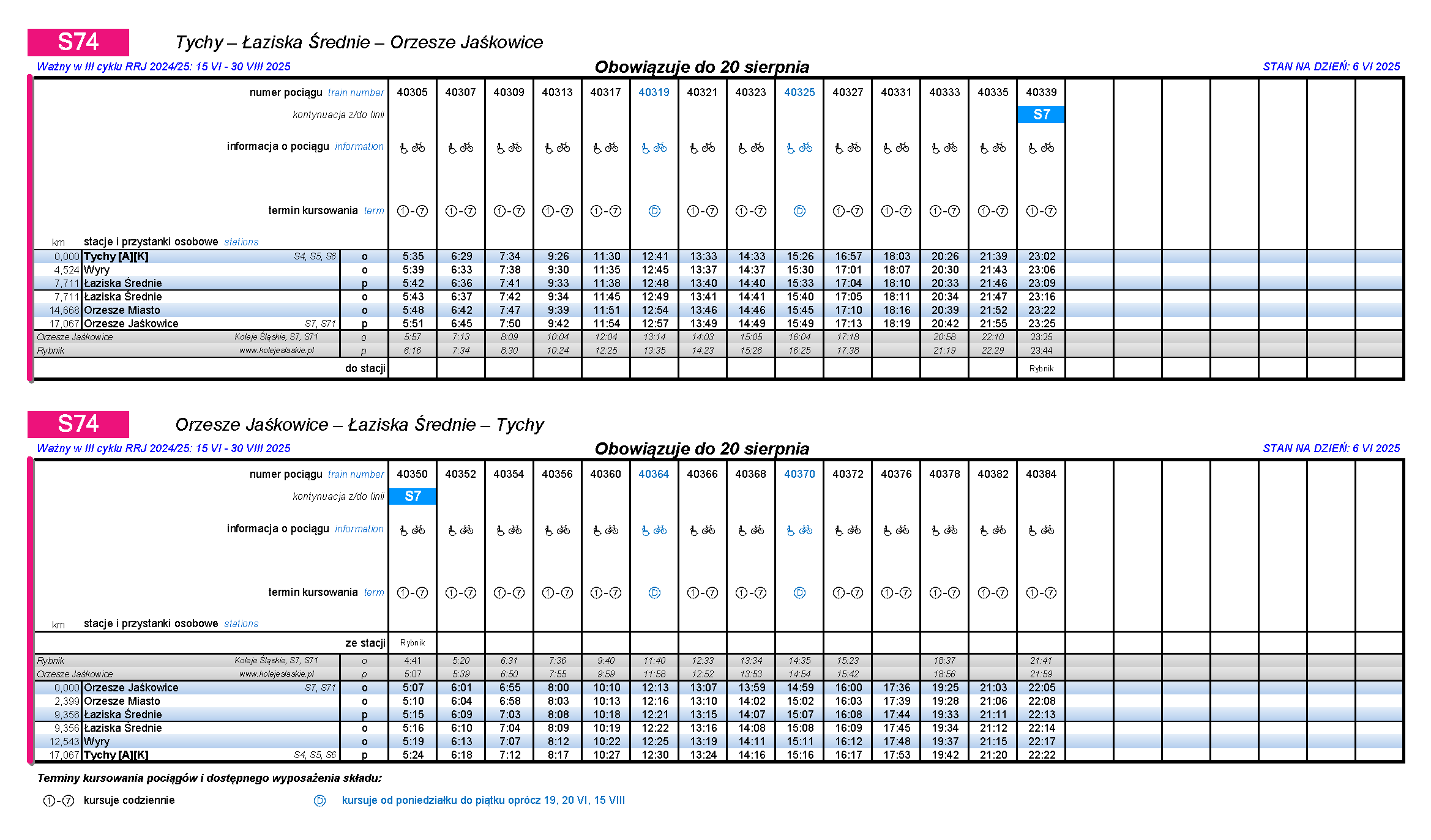 15 czerwca, po wielu latach starań władz Gminy Wyry, pociągi na stałe wrócą do Wyr. Pociągi Kolei Śląskich obsłużą łącznie pięć stacji na linii S74: Tychy, Wyry, Łaziska Średnie, Orzesze Miasto i Orzesze Jaśkowice. W dni robocze pasażerowie będą mieli do wyboru 14, a w dni wolne 12 par pociągów.