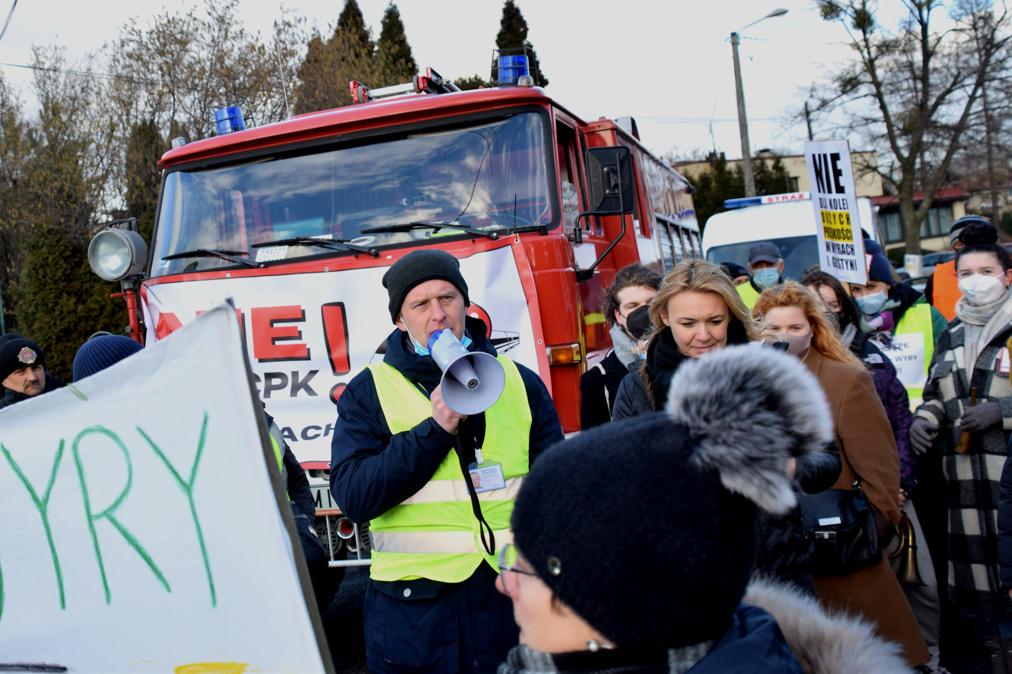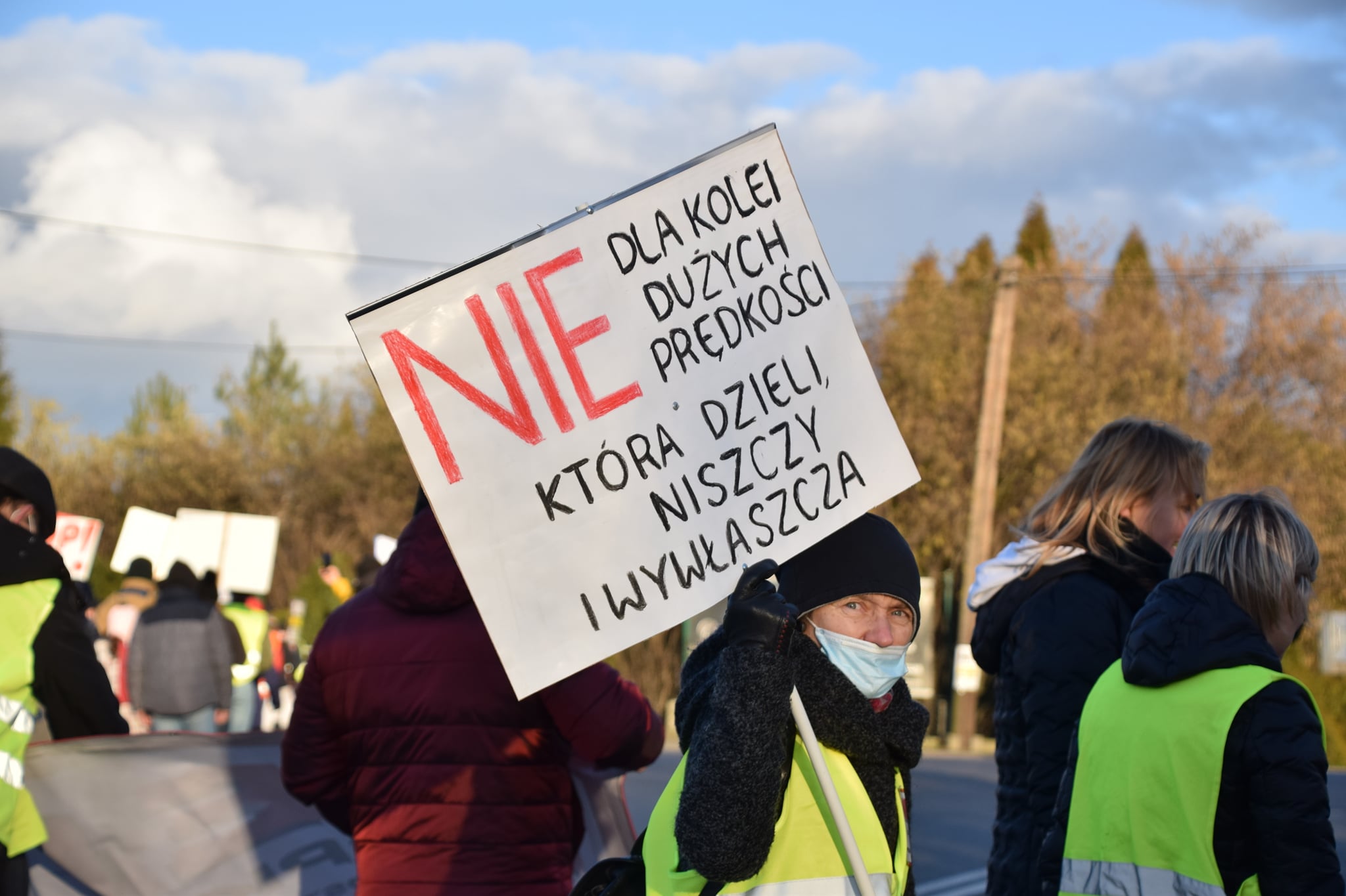 NIE! dla budowy szybkiej kolei w Gminie Wyry wybrzmiało wczoraj (22.02) wielokrotnie podczas protestu na skrzyżowaniu ul. Pszczyńskiej, Zjednoczenia i Łaziskiej.