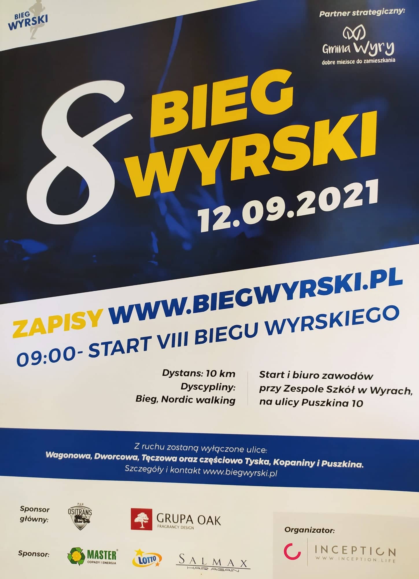 W godzinach 6.30 - 10.30 zamknięte dla ruchu będą ulice: Zbożowa, Główna, Puszkina oraz Wagonowa. W wymienionych godzinach autobusy linii nr 69, 157 i 294 nie będą wjeżdżać do centrum Wyr - przystanki Wyry Urząd Gminy i Wyry Główna nie będą obsługiwane. Szczegółowe informacje o utrudnieniach oraz o przebiegu zawodów można uzyskać pod nr tel. 697 080 764.
