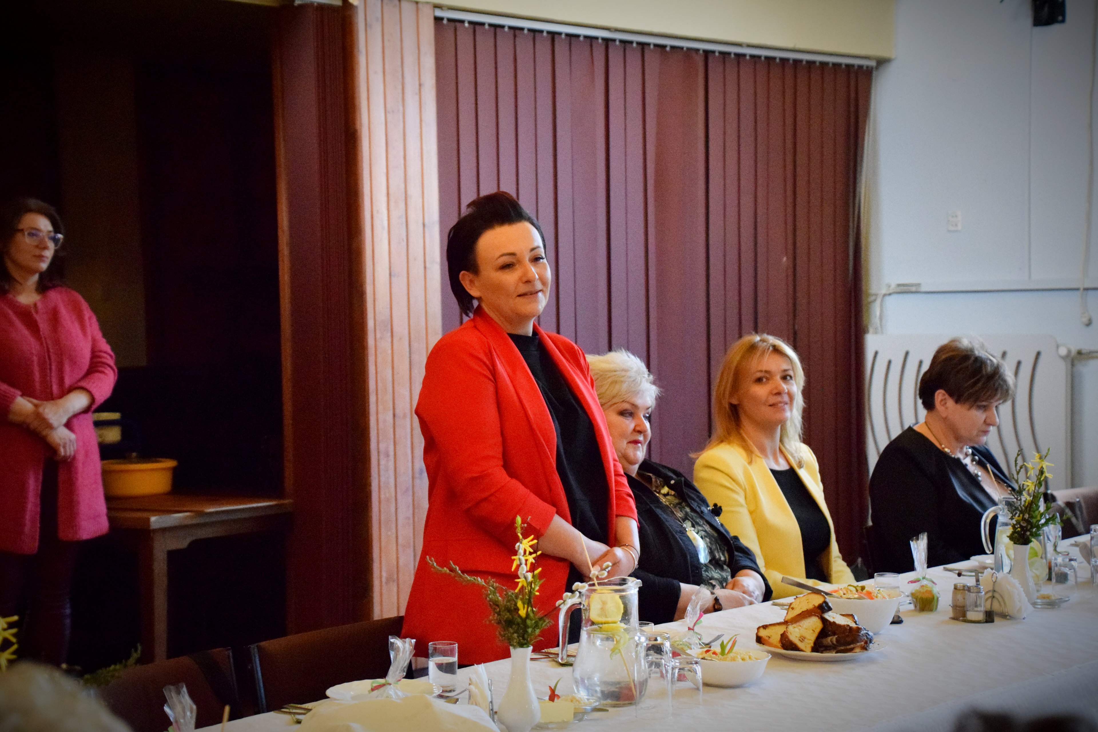 Do wspólnego stołu zasiedli podopieczni GOPS-u, członkowie klubów seniora, wójt Gminy Wyry Barbara Prasoł, Przewodnicząca Rady Gminy Joanna Pasierbek-Konieczny oraz kierownik GOPS Anna Łożańska. W spotkaniu uczestniczyło ponad 60 osób. O zastawienie wielkanocnego stołu zadbali członkowie klubów seniora w Wyrach i Gostyni. Podczas spotkania, przy ich pomocy można było też wykonać stroik wielkanocny, z czego chętnie korzystano. Nie zabrakło tradycyjnych potraw, życzeń, wspólnych rozmów i radosnej, świątecznej atmosfery.