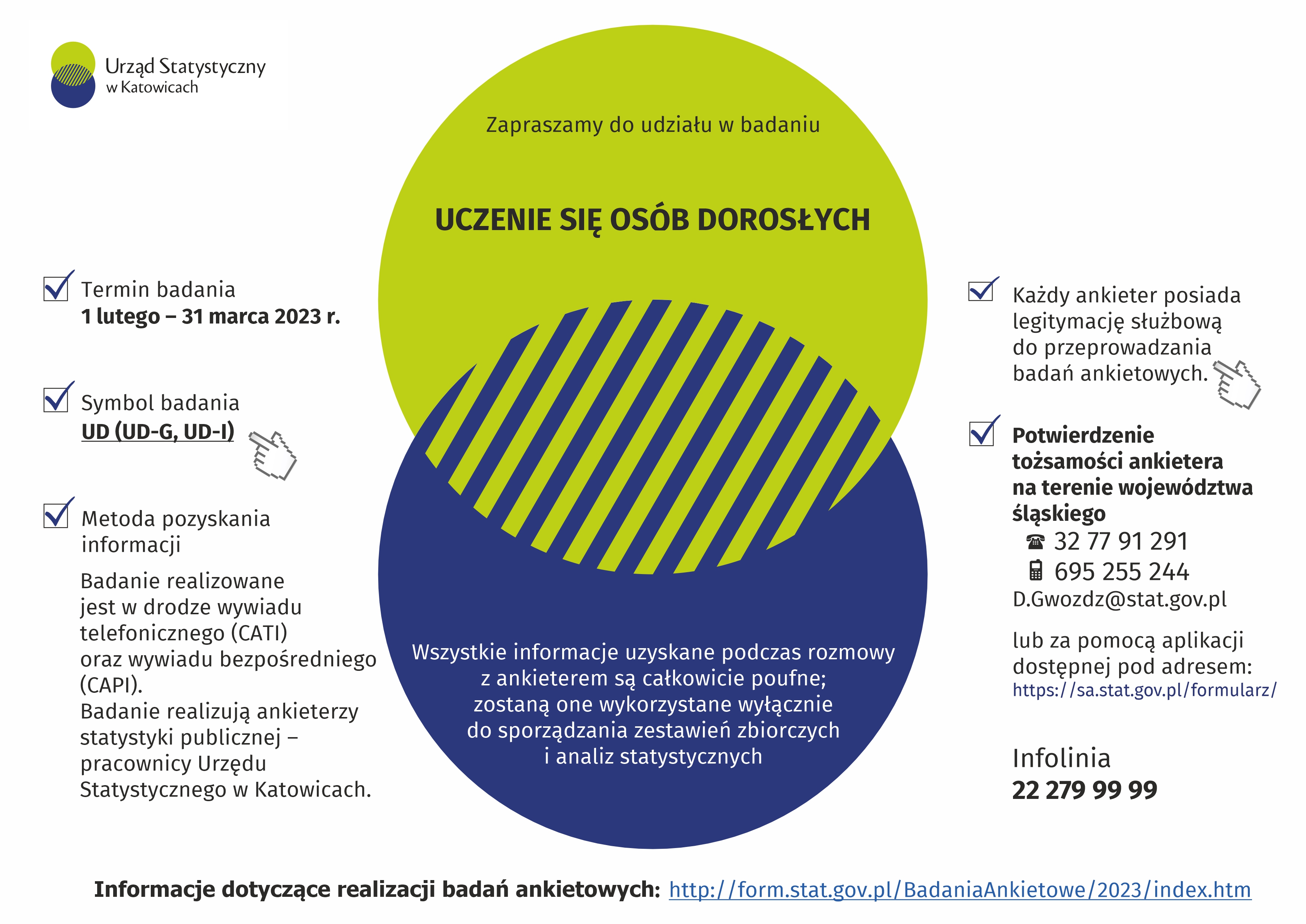 Urząd Statystyczny w Katowicach w terminie 1 lutego – 31 marca prowadzi badanie ankietowe „Uczenie się osób dorosłych”. Badanie odbywa się w formie wywiadu telefonicznego wśród mieszkańców województwa śląskiego.