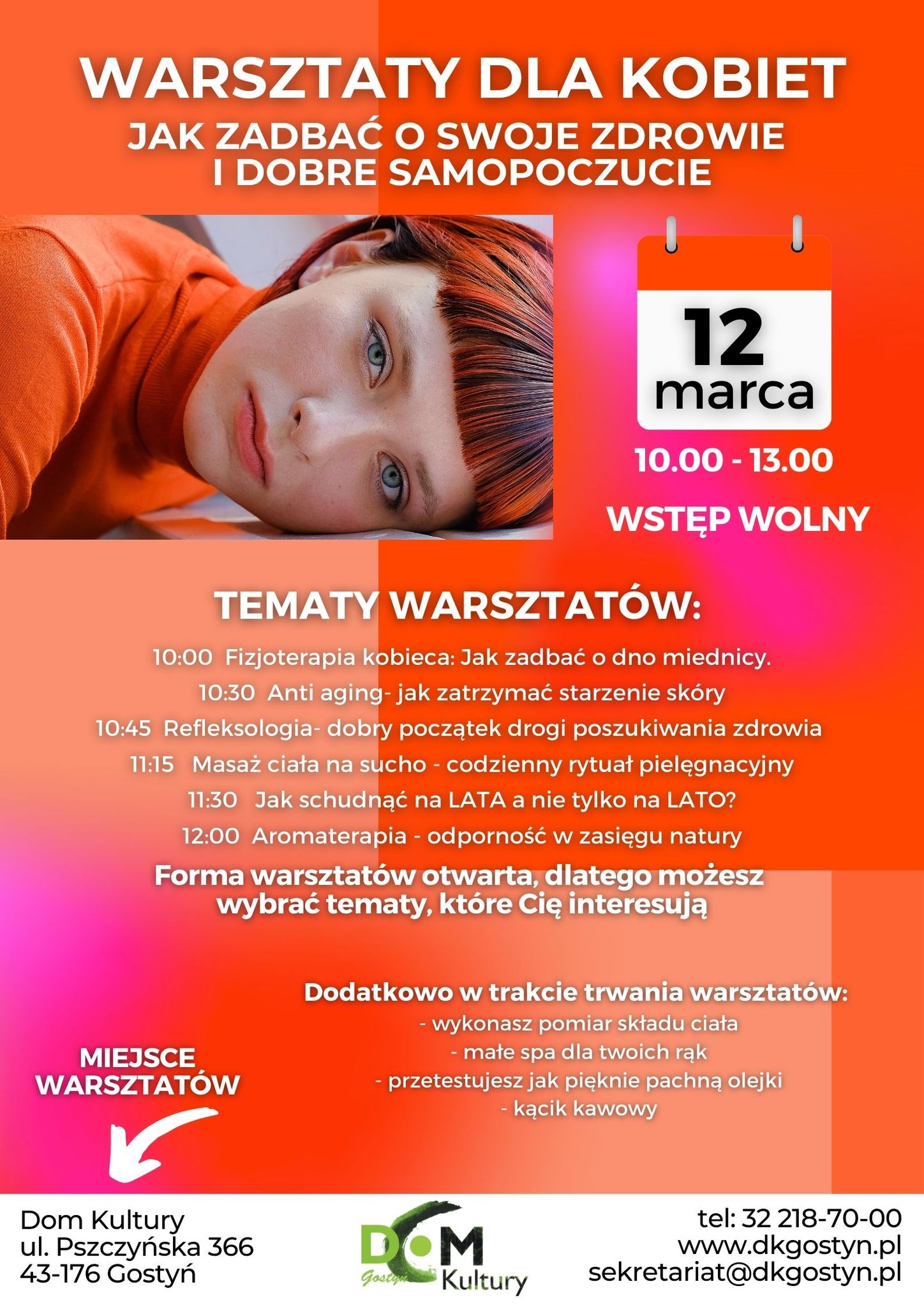 Już w najbliższą sobotę, 12 marca Dom Kultury w Gostyni we współpracy z Fizjo-Aktywna Aleksandra Stołecka zapraszają wszystkie mieszkanki naszej gminy na bezpłatne warsztaty: Jak zadbać o swoje zdrowie o dobre samopoczucie.