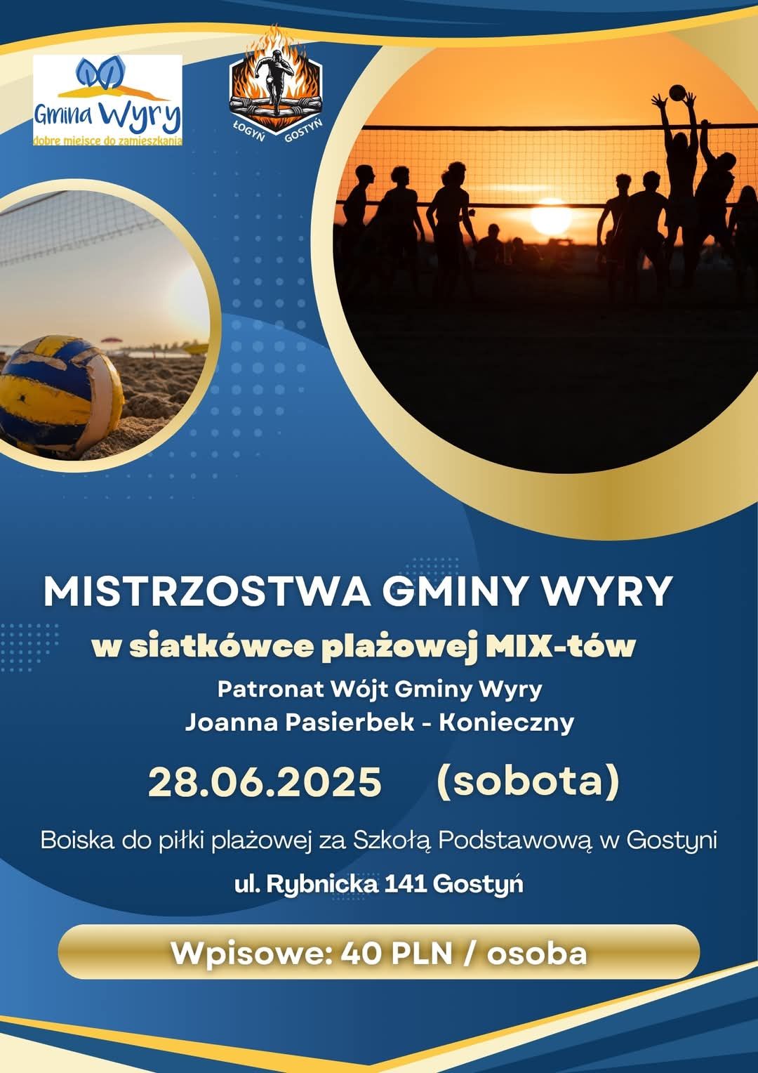 Serdecznie zapraszamy już w sobotę, 28 czerwca na boiska do siatkówki plażowej za Szkołą Podstawową im. Bohaterów Września 1939 w Gostyni. Stawką będzie tytuł Mistrza Gminy Wyry w siatkówce plażowej mix-tów!
