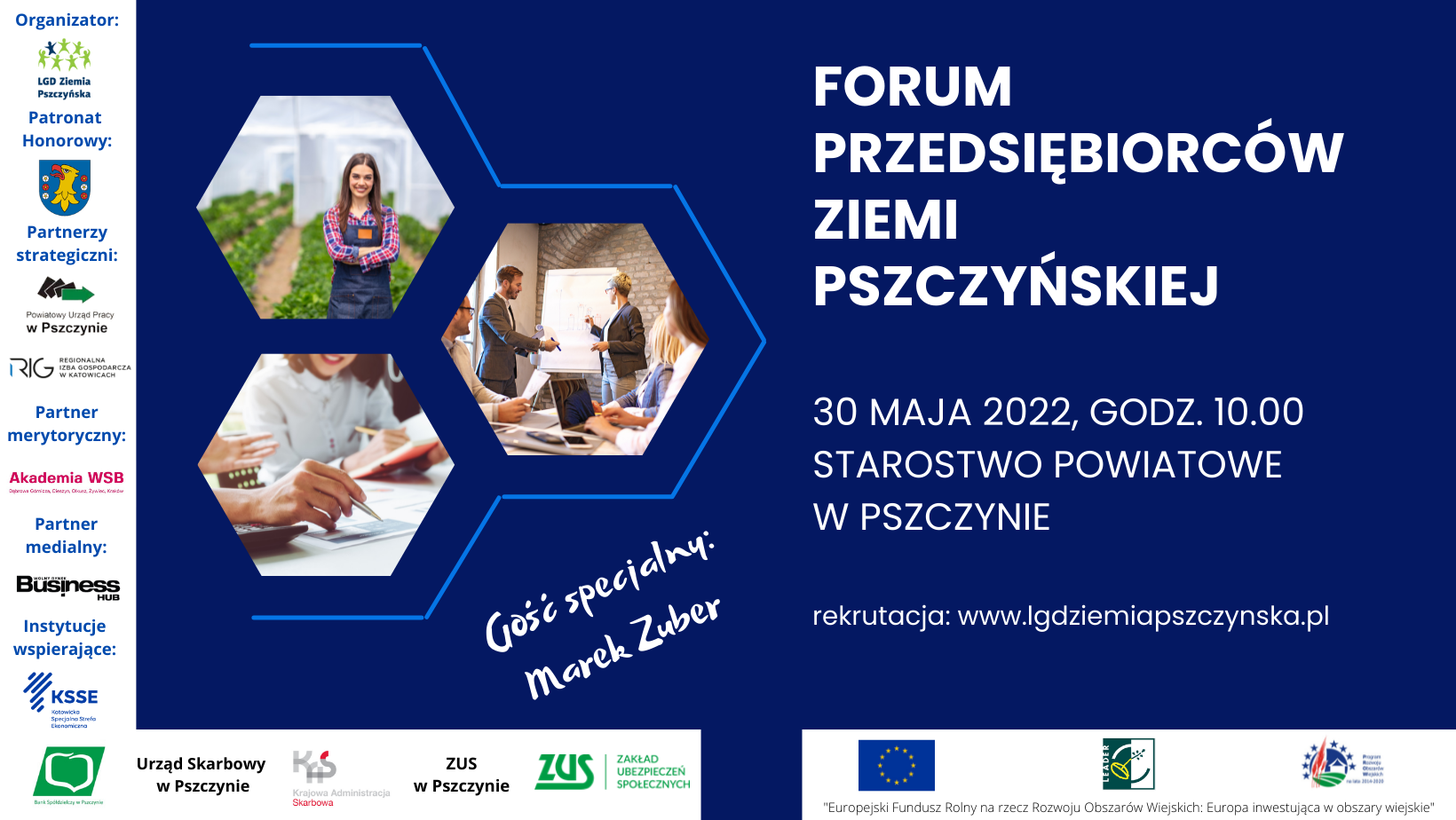 Stowarzyszenie Lokalna Grupa Działania „Ziemia Pszczyńska" we współpracy z Regionalną Izbą Gospodarczą w Katowicach oraz Powiatowym Urzędem Pracy w Pszczynie zapraszają na Forum Przedsiębiorców Ziemi Pszczyńskiej. Wydarzenie odbędzie się 30 maja o godz. 10.00 w Starostwie Powiatowym w Pszczynie.