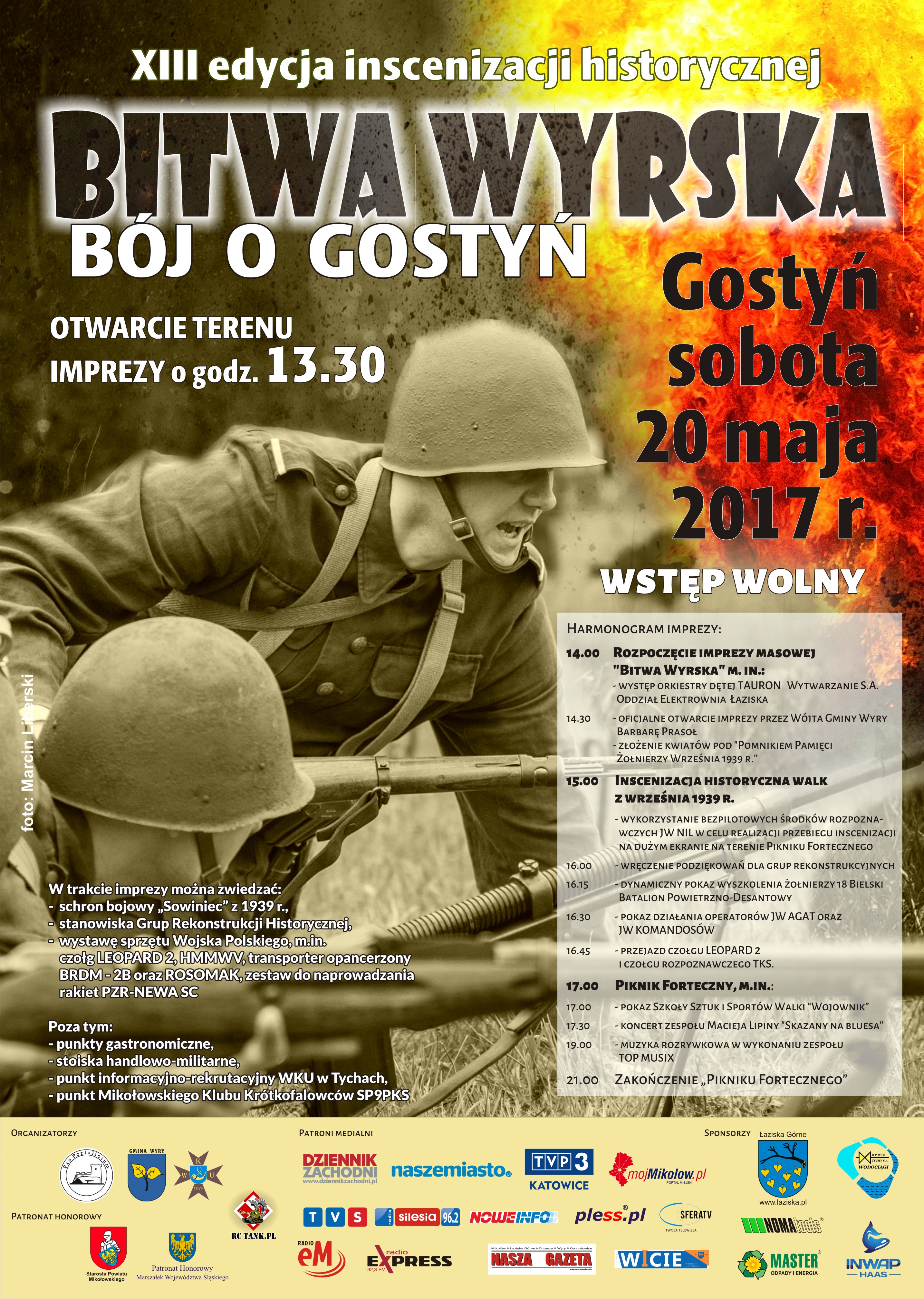W 2017 roku będzie miała miejsce już XIII edycja inscenizacji „Bitwy Wyrskiej – Bój o Gostyń” przy udziale około 200 młodych rekonstruktorów z całej Polski, broni i pojazdów z okresu II wojny światowej oraz efektów pirotechnicznych. Rekonstrukcja p.n. „Bitwa Wyrska – Bój o Gostyń” jest upamiętnieniem zapomnianych przez historię, a wygranych przez Polaków walk z najeźdźcą hitlerowskim toczących się w dniach 1-3 września 1939 r. w obrębie miejscowości Wyry i Gostyń na Śląsku. Widowisko będzie miało na celu zaprezentowanie szerokiej publiczności lekcji „żywej historii”, która mamy nadzieję, że zwłaszcza w młodym pokoleniu obudzi ducha patriotyzmu i zainteresowanie historią.