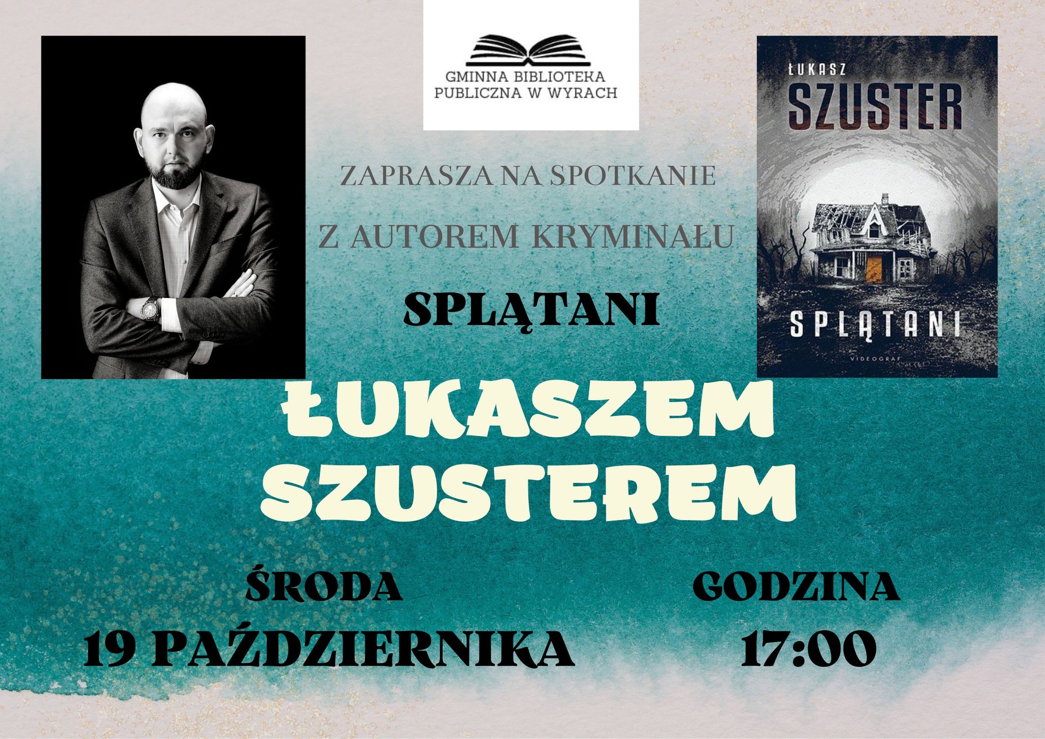 Biblioteka w Wyrach 19 października zaprasza na spotkanie z Łukaszem Szusterem, autorem kryminału Splątani. powrót