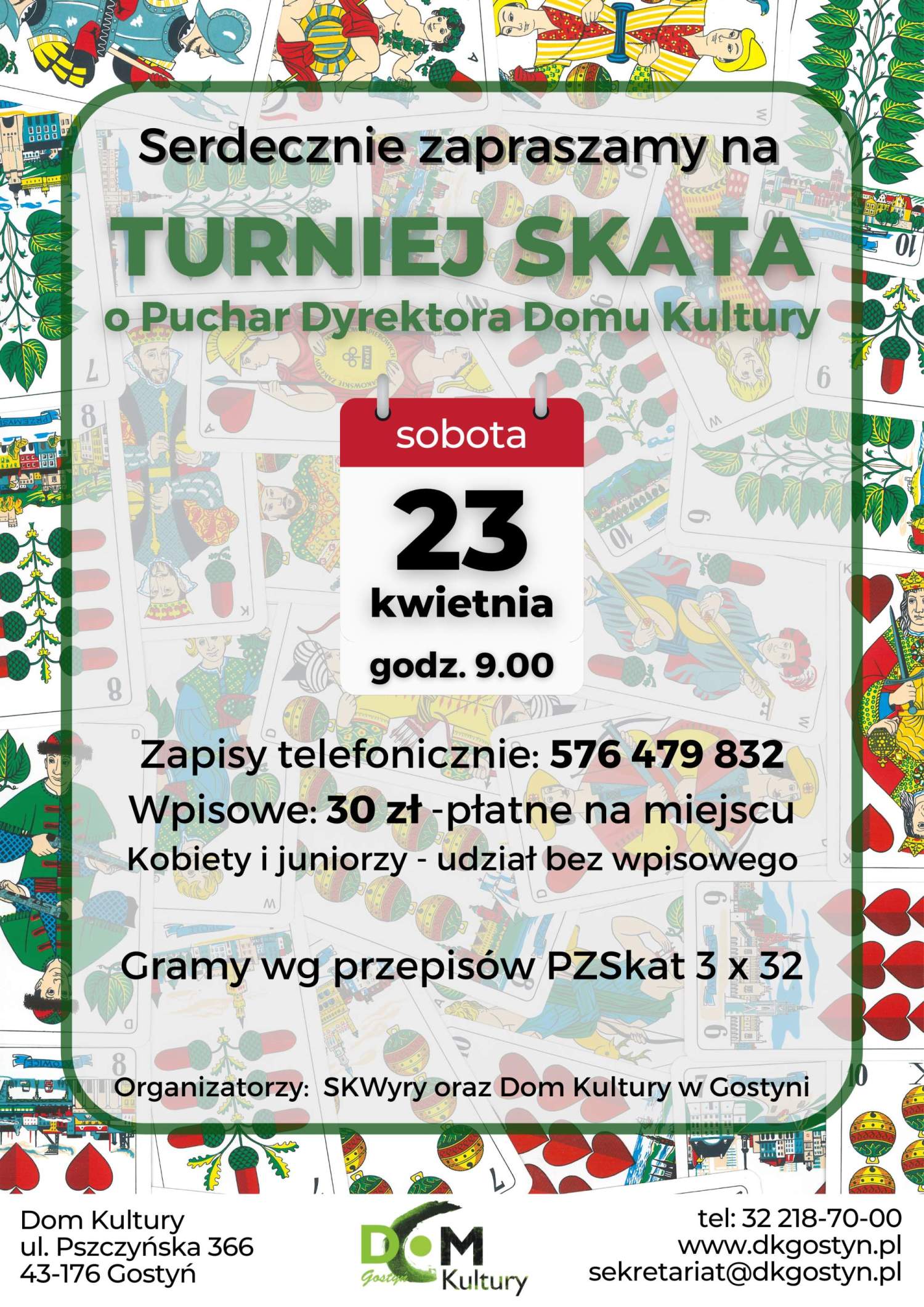Dom Kultury 23 kwietnia zaprasza na Turniej Skata o Puchar Dyrektora Domu Kultury.
