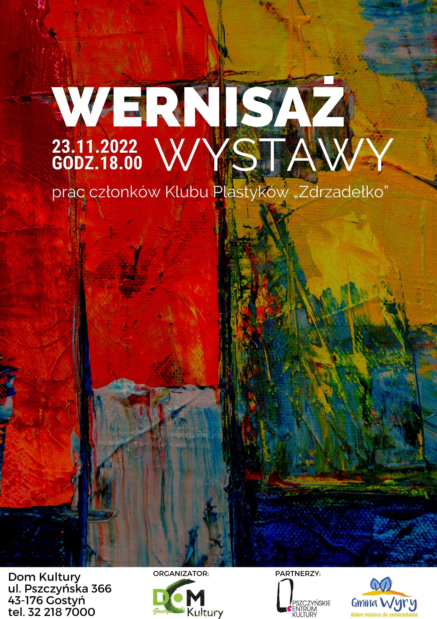 Partnerami wernisażu są: Pszczyńskie Centrum Kultury oraz Gmina Wyry.