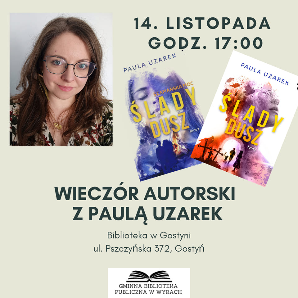 Biblioteka w Gostyni 14 listopada zaprasza na wieczór autorski z Paulą Uzarek.