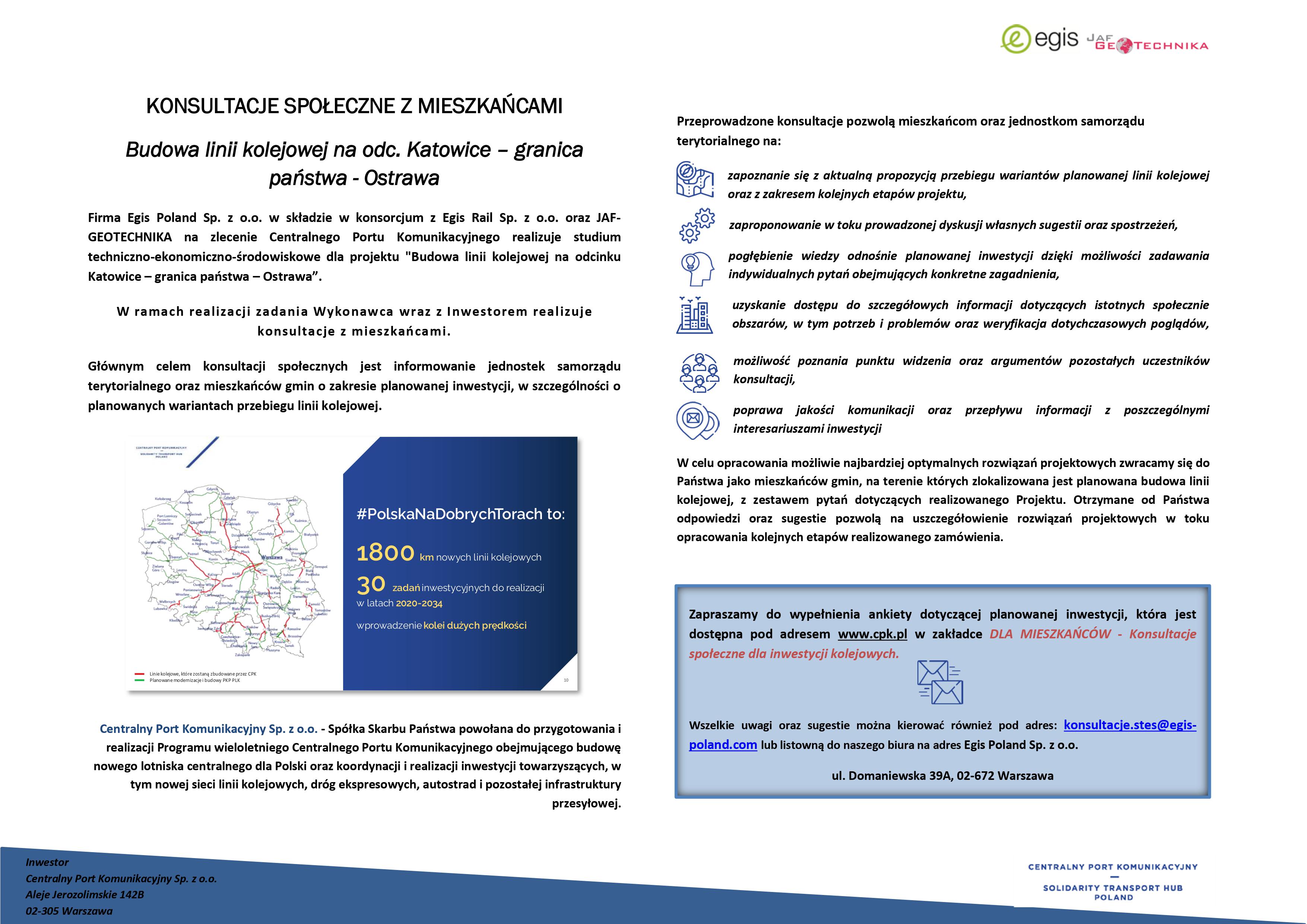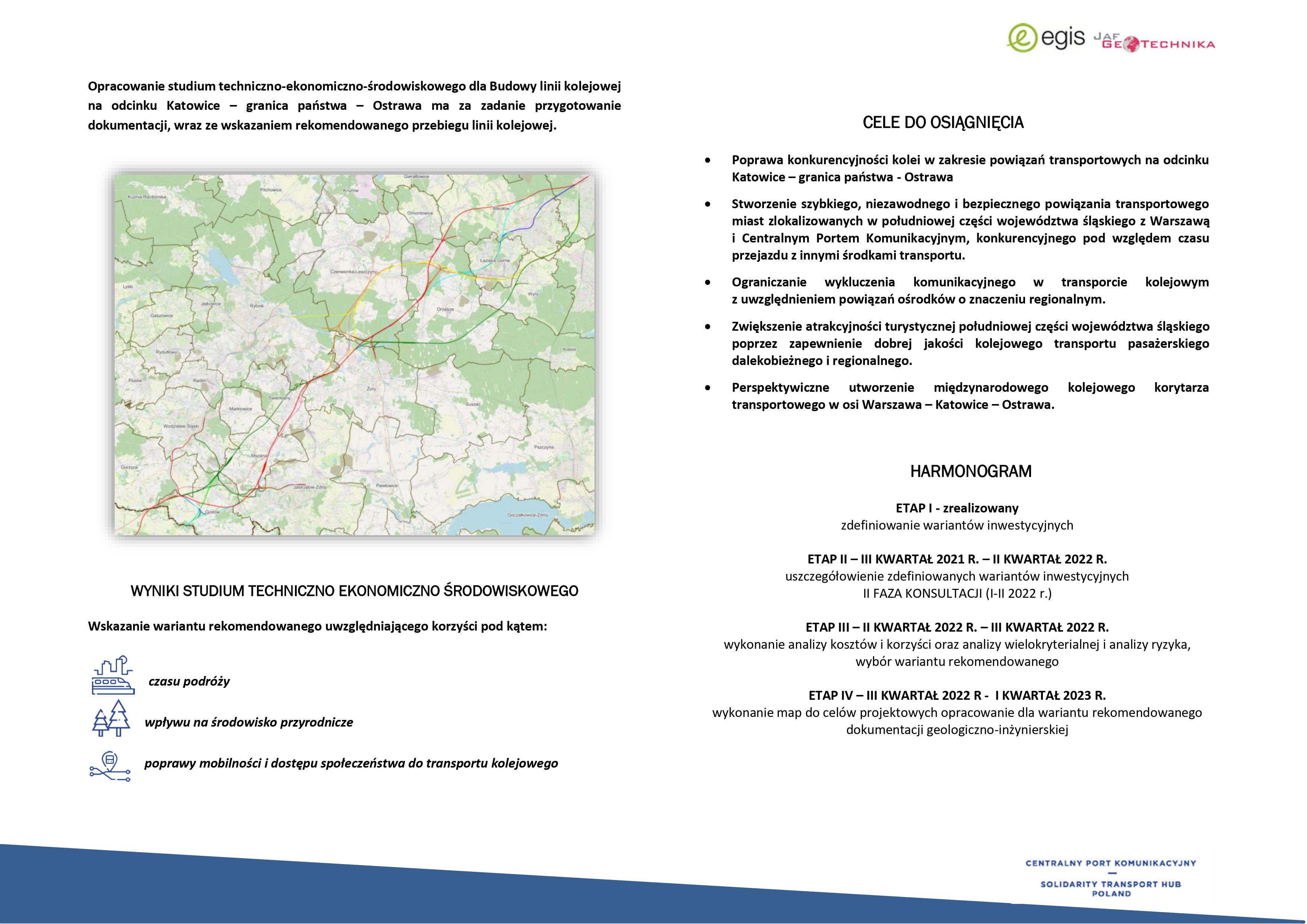 W nawiązaniu do informacji, jaką otrzymaliśmy od Firmy Egis Poland Sp. z o.o, która realizuje na zlecenie Centralnego Portu Komunikacyjnego Sp. z o.o. opracowanie „Studium techniczno – ekonomiczno – środowiskowe dla zadania: Budowa linii kolejowych: nr 170 Katowice-Granica Państwa-Ostrawa, publikujemy materiały zawierające zakres planowanych wariantów nowej linii kolejowej nr 170 Katowice-Granica Państwa-Ostrawa.