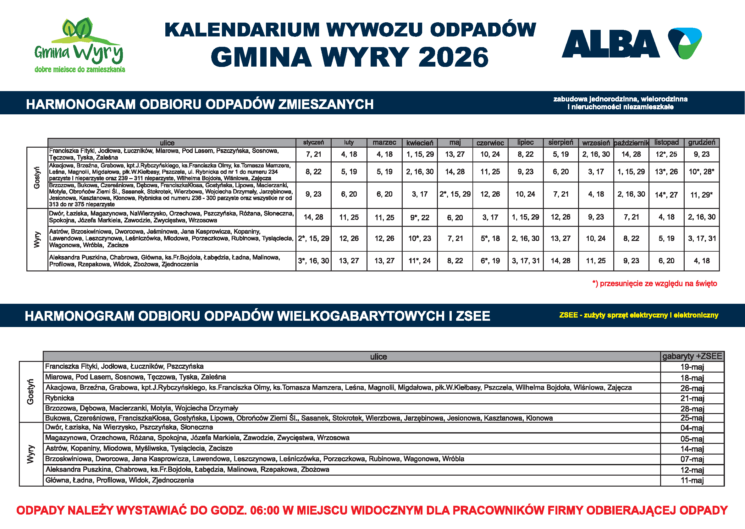 Publikujemy nowy harmonogram zbiórki odpadów komunalnych z terenu Gminy Wyry. Jest on już również dostępny w aplikacji EcoHarmonogram. Prosimy o pobranie aktualizacji. Harmonogram zbiórki odpadów komunalnych z terenu Gminy Wyry powrót