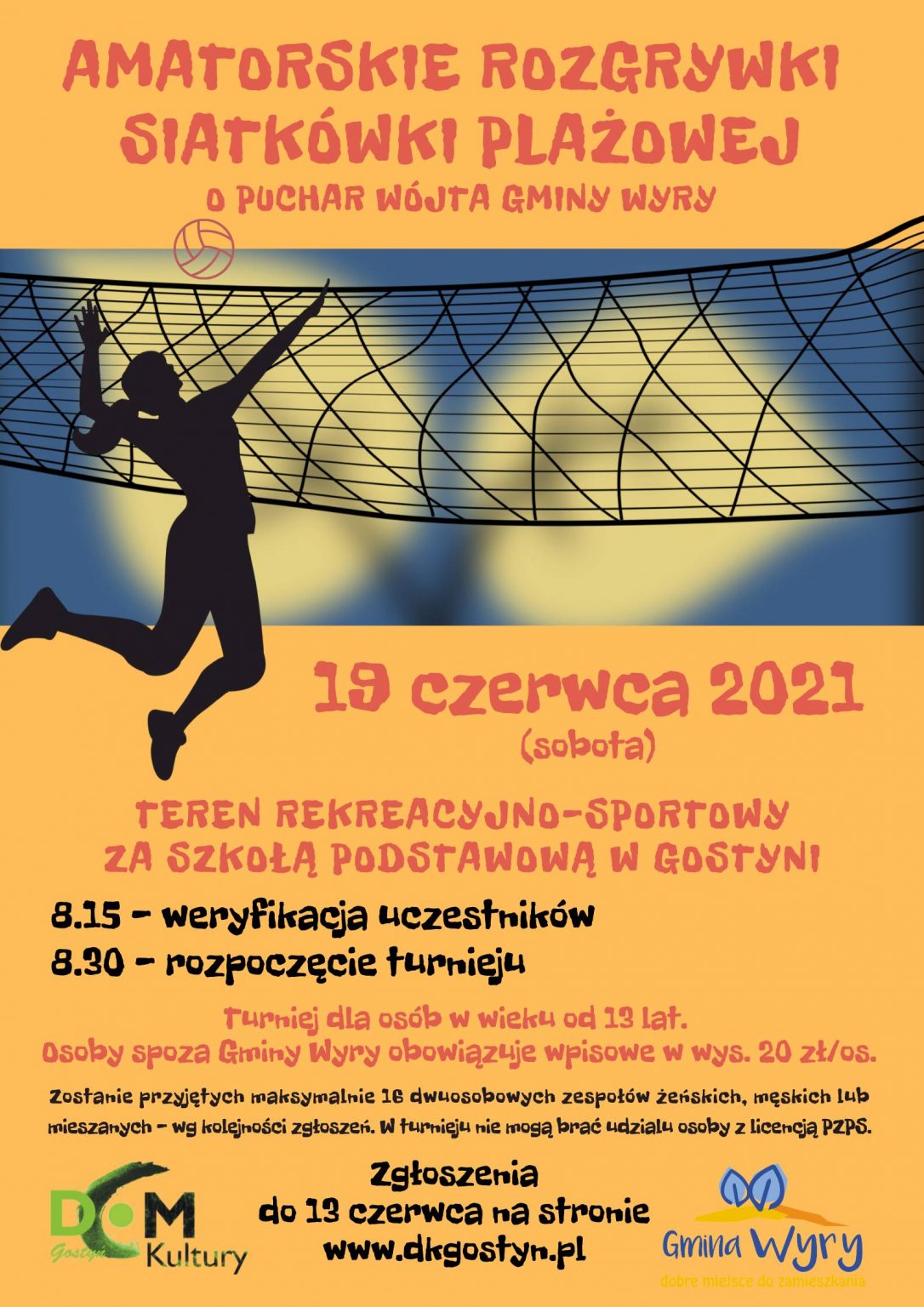 Dom Kultury zaprasza na Turniej Siatkówki Plażowej o Puchar Wójta Gminy Wyry. Szczegóły na stronie internetowej domu kultury. powrót