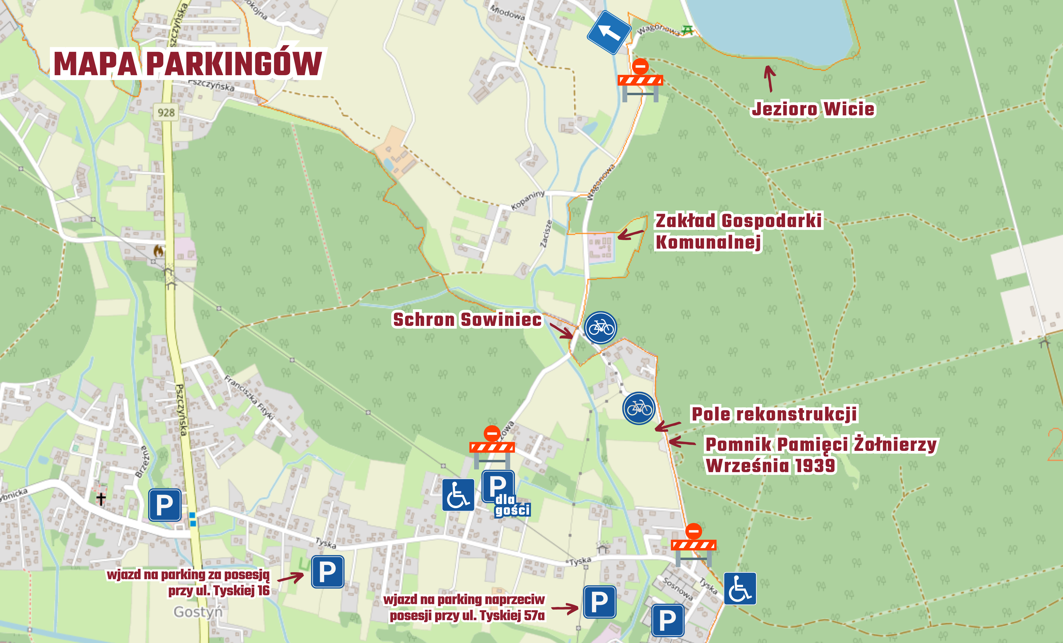 Dojazd na parkingi możliwy będzie od strony ul. Tyskiej w Gostyni. Służby będą wskazywać drogę.