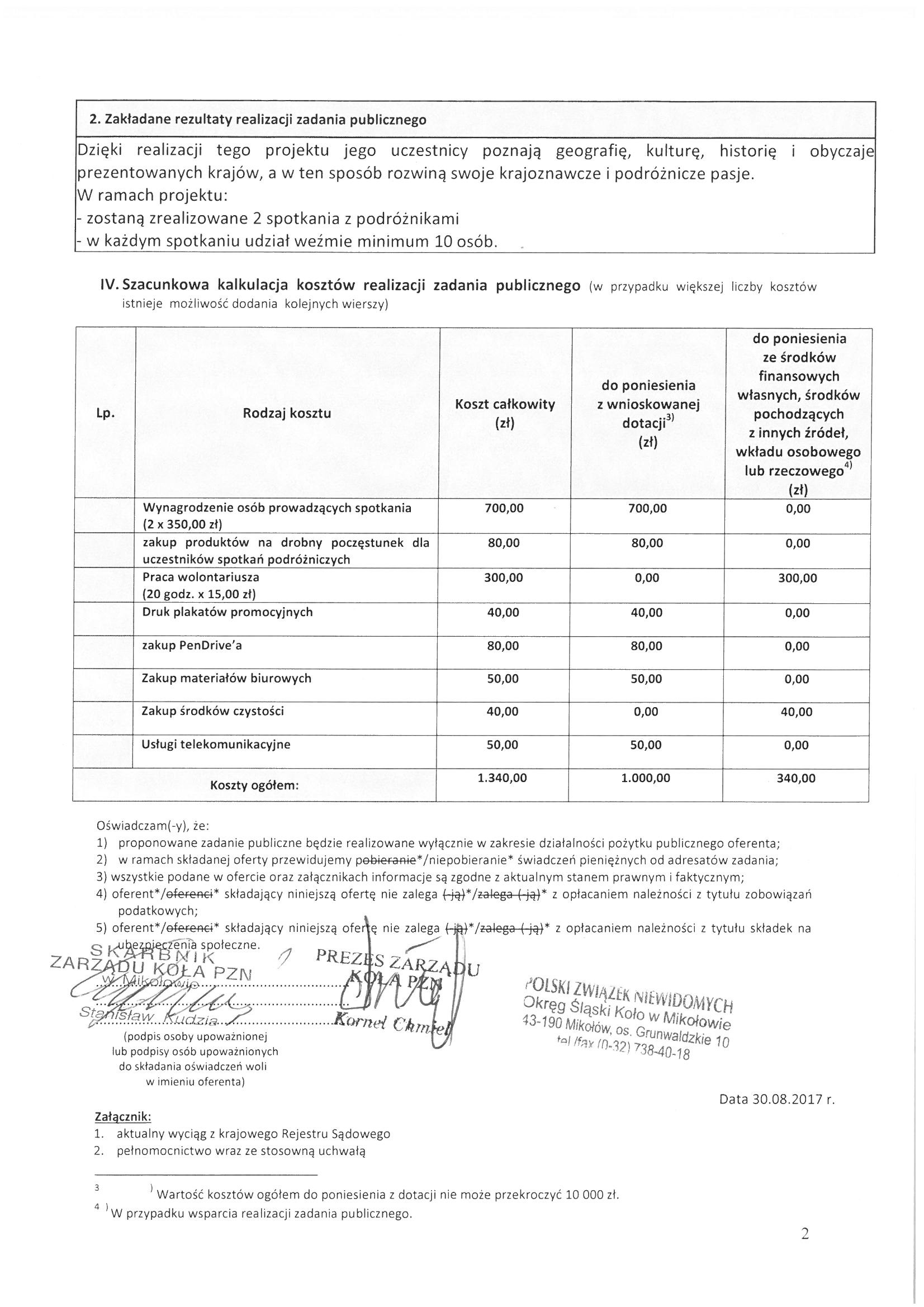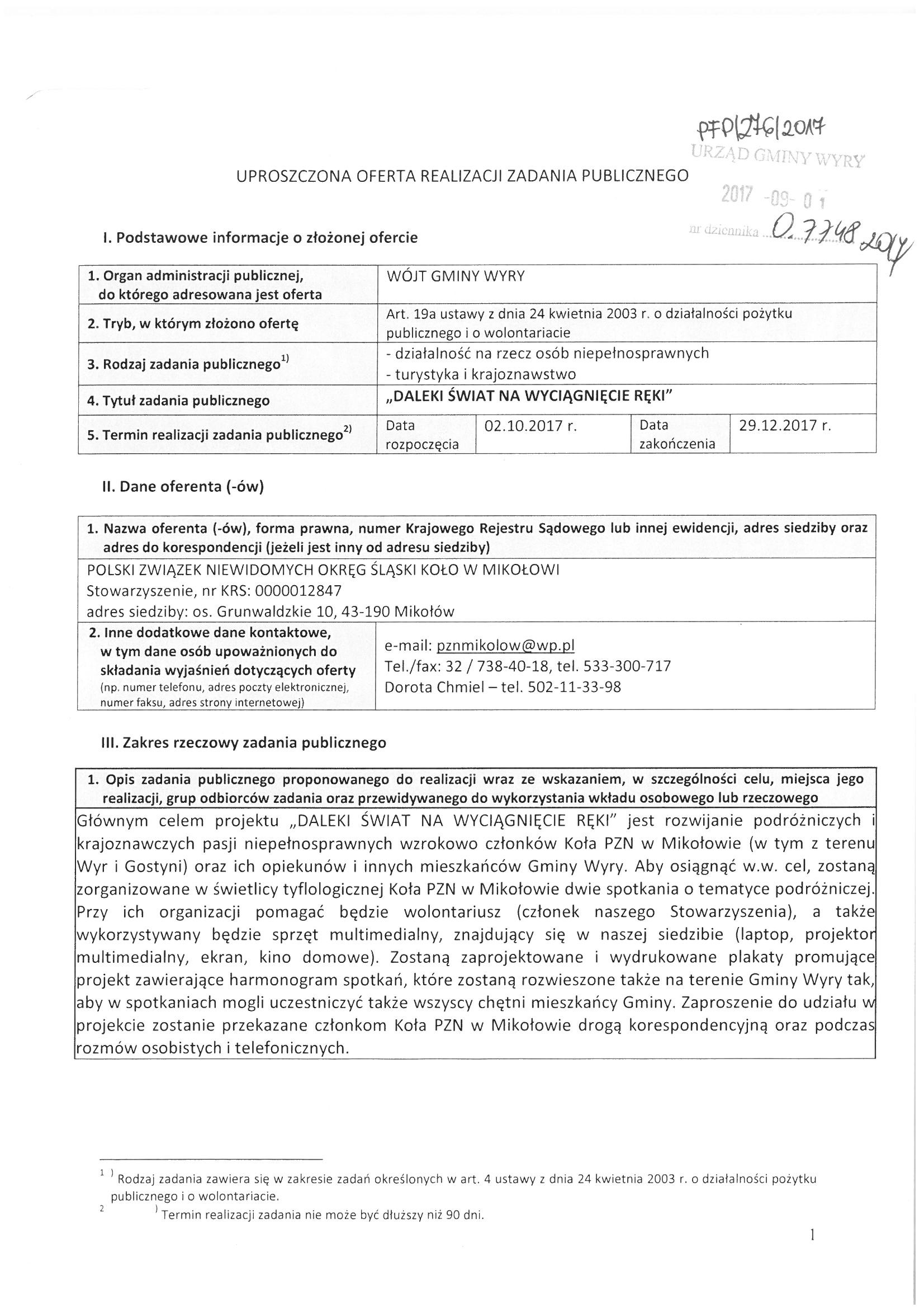 PZN Okręg Śląski Koło w Mikołowie złożyło w dniu 1.09.2017 r. ofertę dotyczącą realizacji zadania publicznego pn. "Daleki świat na wyciągnięcie ręki".