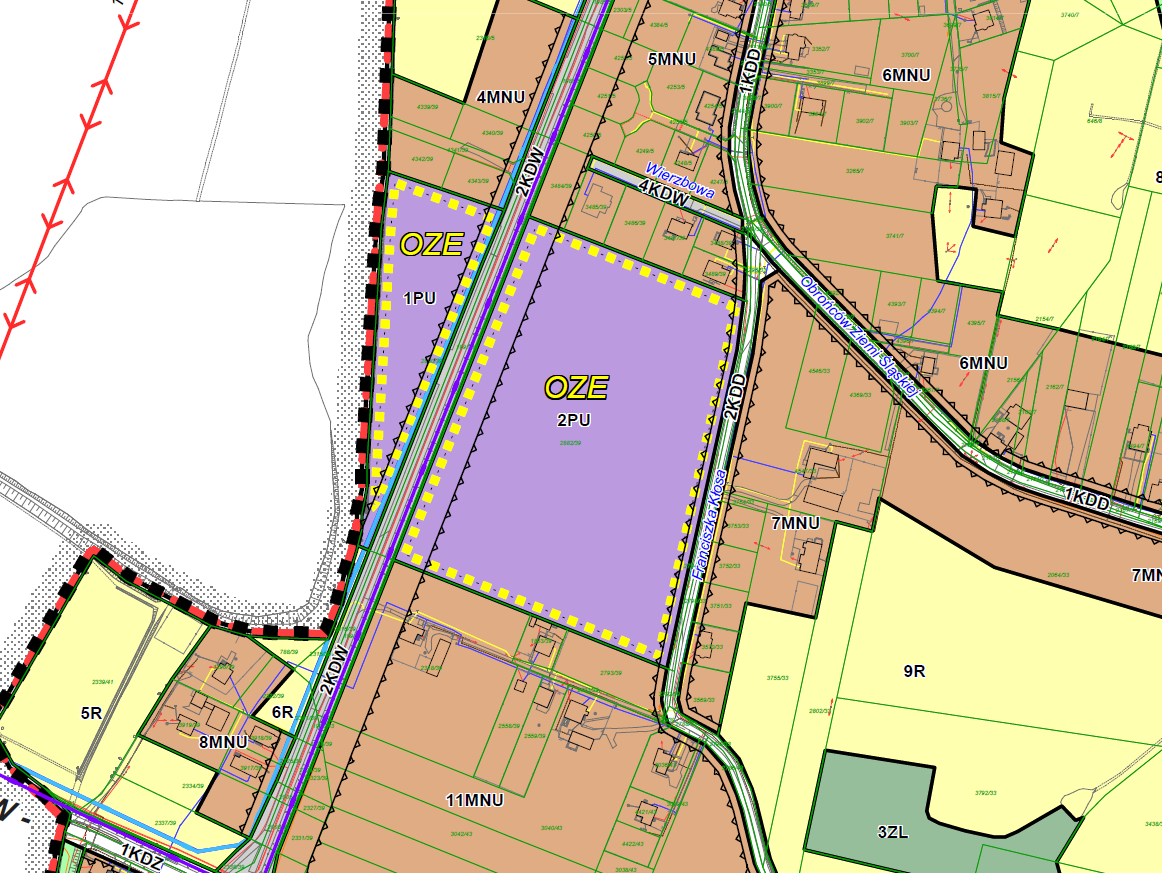 - tereny przy ul. Pszczyńskiej, ul. Na Wierzysko, ul. Transportowa, ul. Dojazdowa, ul. Składowa, ul. Przemysłowa, ul. Ceglana, ul. Towarowej w Wyrach,