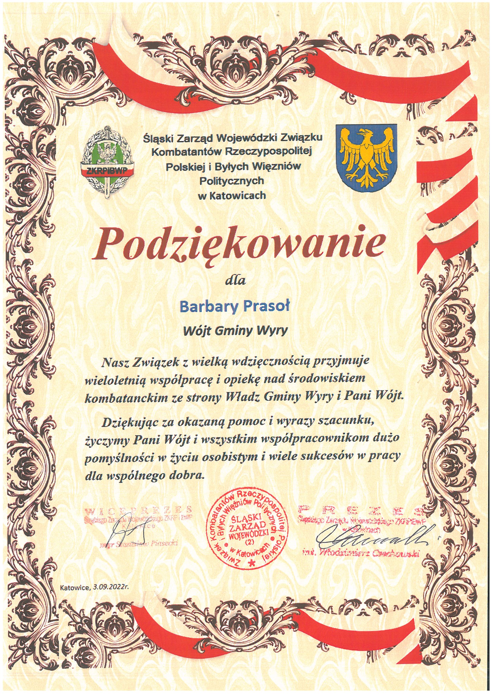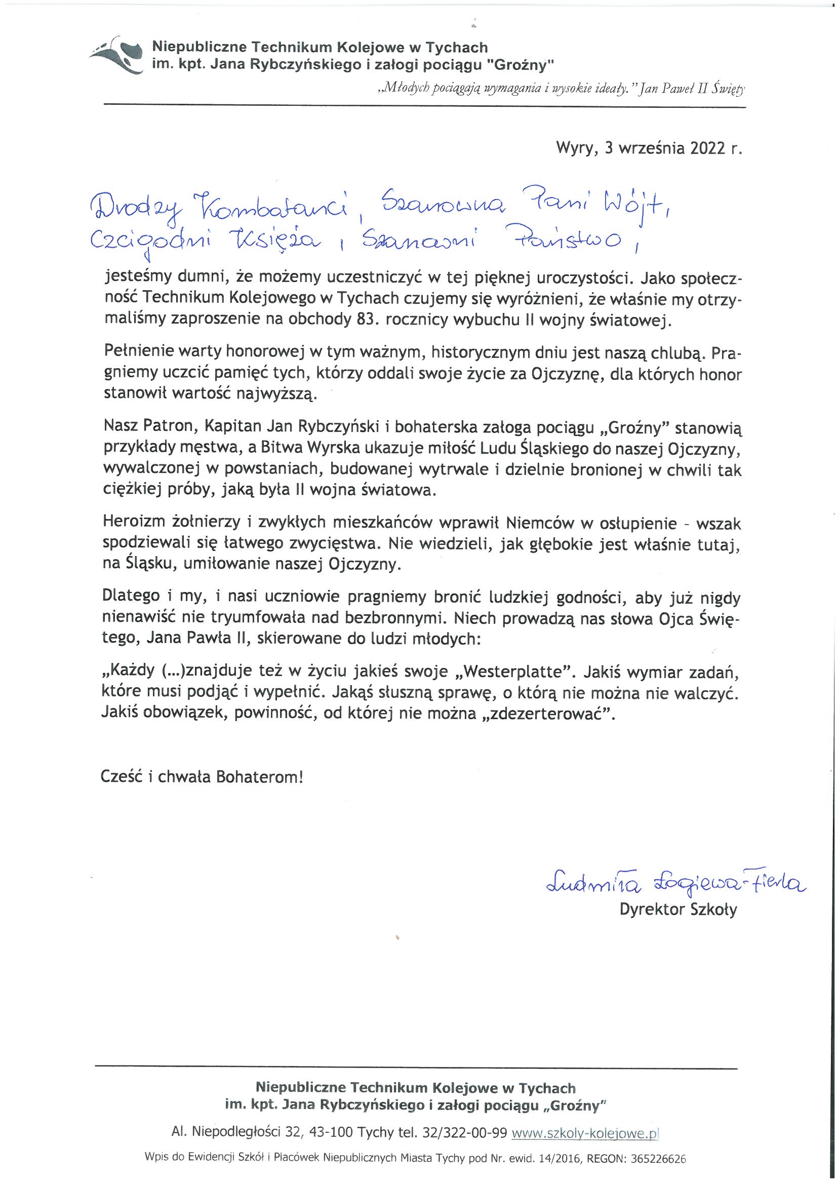 Serdecznie dziękujemy wszystkim, którzy swoim zaangażowaniem przyczynili się do uświetnienia dzisiejszych uroczystości. Szczególne podziękowania kierujemy do uczniów, nauczycieli i dyrekcji naszych gminnych szkół podstawowych, Zespołu Szkół im. Orląt Lwowskich w Tychach, Zespołu Szkół Energetycznych i Usługowych w Łaziskach Górnych oraz Technikum Kolejowego w Tychach, a także Domu Kultury w Gostyni, Zakładu Gospodarki Komunalnej w Wyrach, Ochotniczej Straży Pożarnej w Gostyni, przedstawicieli Klubu Senior +, radnego Tomasza Fityki, a także Pana Henryka Szołtyska.