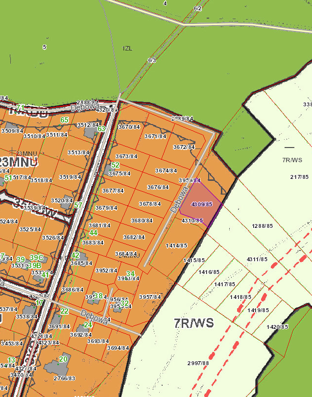 - Nieruchomość gruntowa położona w Gostyni przy ul. Dębowej, zapisanej w Księdze Wieczystej KA1M/00002265/3 prowadzonej przez Sąd Rejonowy w Mikołowie: